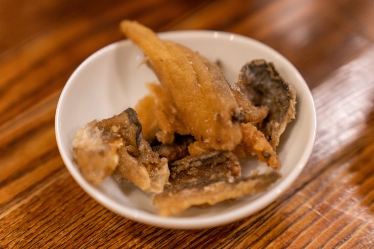 お店は四谷二丁目の交差点にある雑居ビルの地下にあるけどなかなか探しにくい。表に看板などがあまり出てない。やっと探せて地下に降りたら雑居ビル特有の空気感が漂っていてお店もお世辞にもお洒落とは言えない。要するに少し小さめの味のある居酒屋な感じ。だって居酒屋だもんな。でもこの気取らない雰囲気落ち着くね。