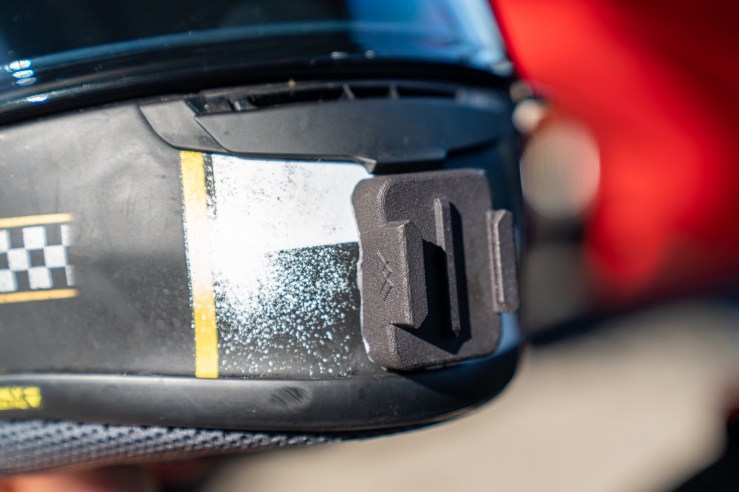 こちらがヘルメットにZ-7用のマウントを付着したイメージ。ヘルメットのシェープに合わせて少しの隙間もなくバッチリ取り付けられる。