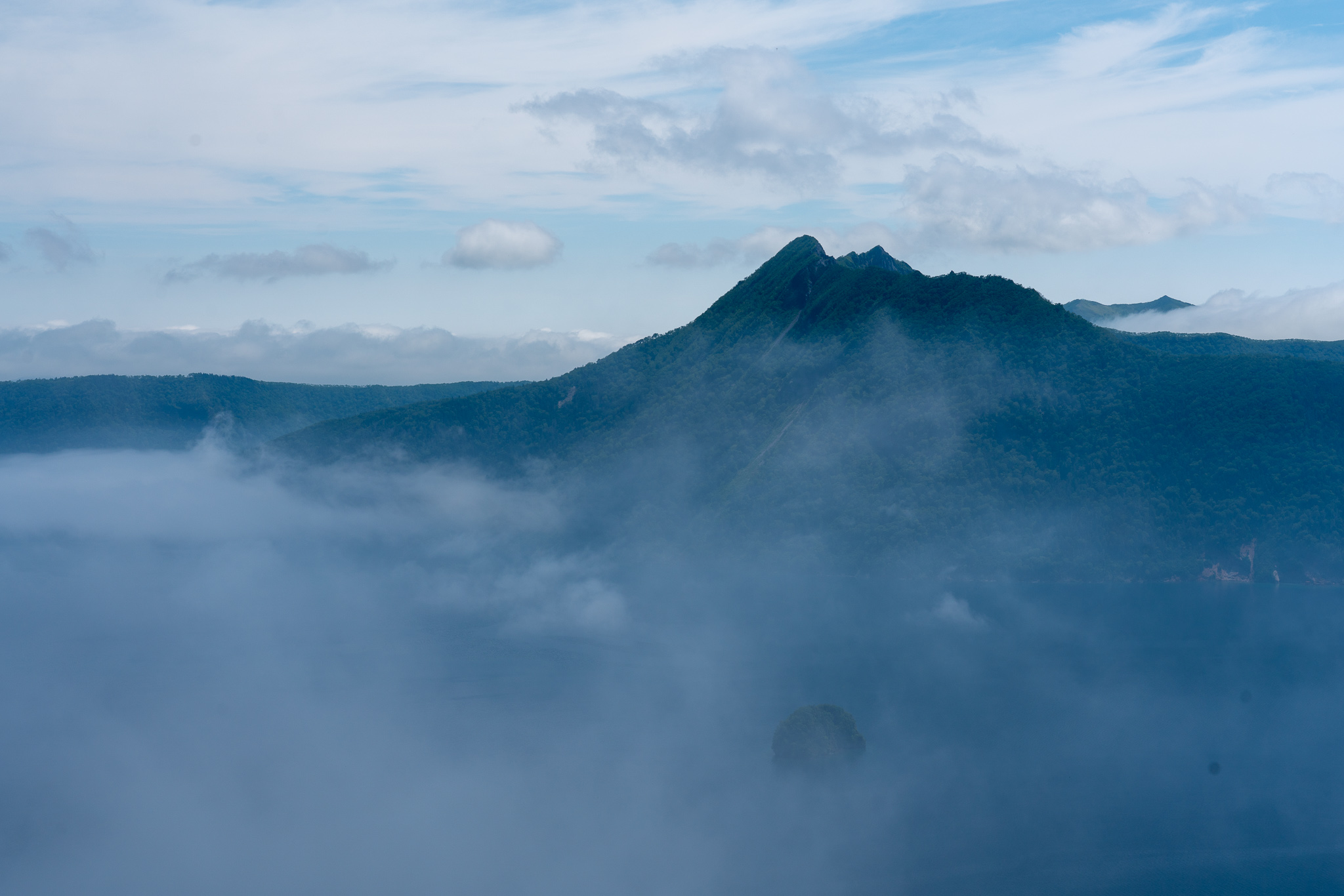もう少し寝ようかと思ったけどテントのドアを開けると湖畔から爽やかで気持ちいい風が吹いてくる。またその銀盤のような湖の水面と低い雲の流れ、登っていくお日様を見てると自分が今北海道に居るのを実感する。なんと美しい世界なんだ。もう起きるしかないか。朝の5時。