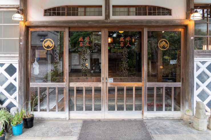 次の目的地は千人風呂で有名な金谷旅館。このレトロな佇まいがたまらない。