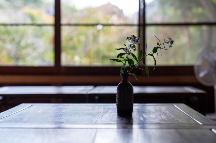 この旅館の休憩所もまた味があっていい。何気なく花瓶が置かれていてよく道端で見る野花が刺さってあるけどそれがまたいい。木枠の窓から入ってくる光もどこか柔らかくて癒やされる。昼寝でもしてから行きたいところだが、折角の下田、早く飲みたい(笑)。