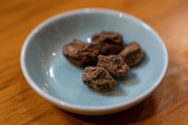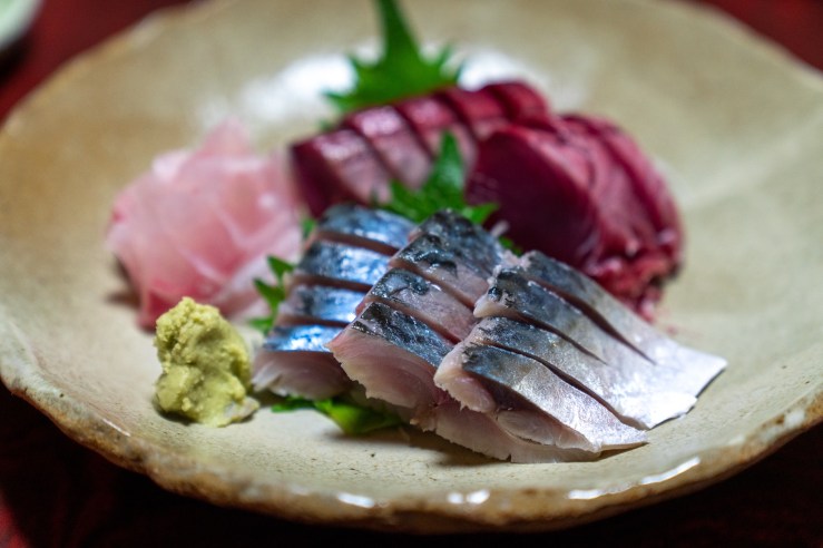 紹興酒に土用干し(?)の梅干しを入れる独特な飲み方。この飲み方も気になるけどあのかわいい狸の徳利も気になるね。梅干し、すっぱいものが苦手なので一杯で十分(汗)。