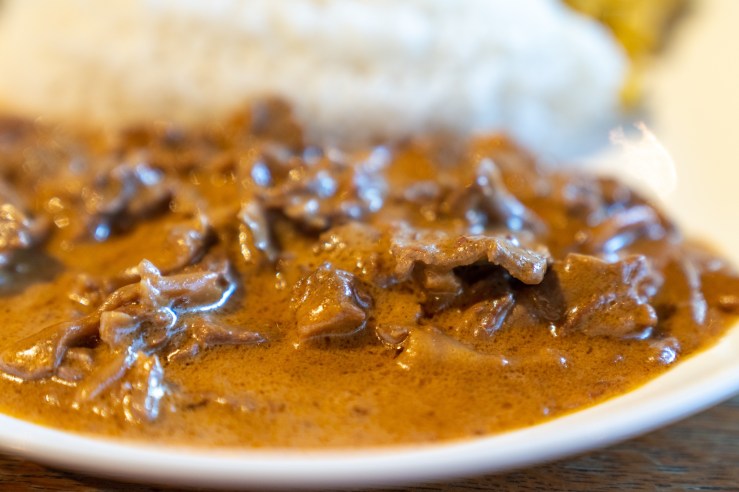 頼んだのはToday’s Specialのビーフストロガノフ。最初なんなのか分からなくてスタッフさんに聞いてみたらハヤシライスと似てる感じでバターがたくさん入っていてまろやかで美味しいと説明してくれたので気になって頼んでみた。