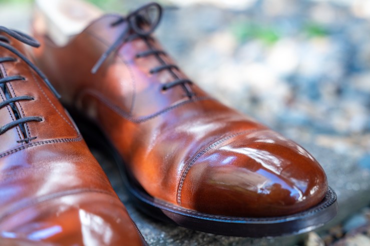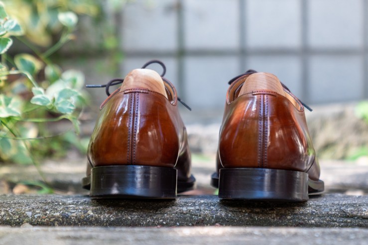 後、こちらはヴィンテージスティールとハーフラバーソールでのソールの補強と鏡面仕上げを頼んだChurch’sの靴。これもまた惚れてしまいそうな仕上がり!完璧でございますね。