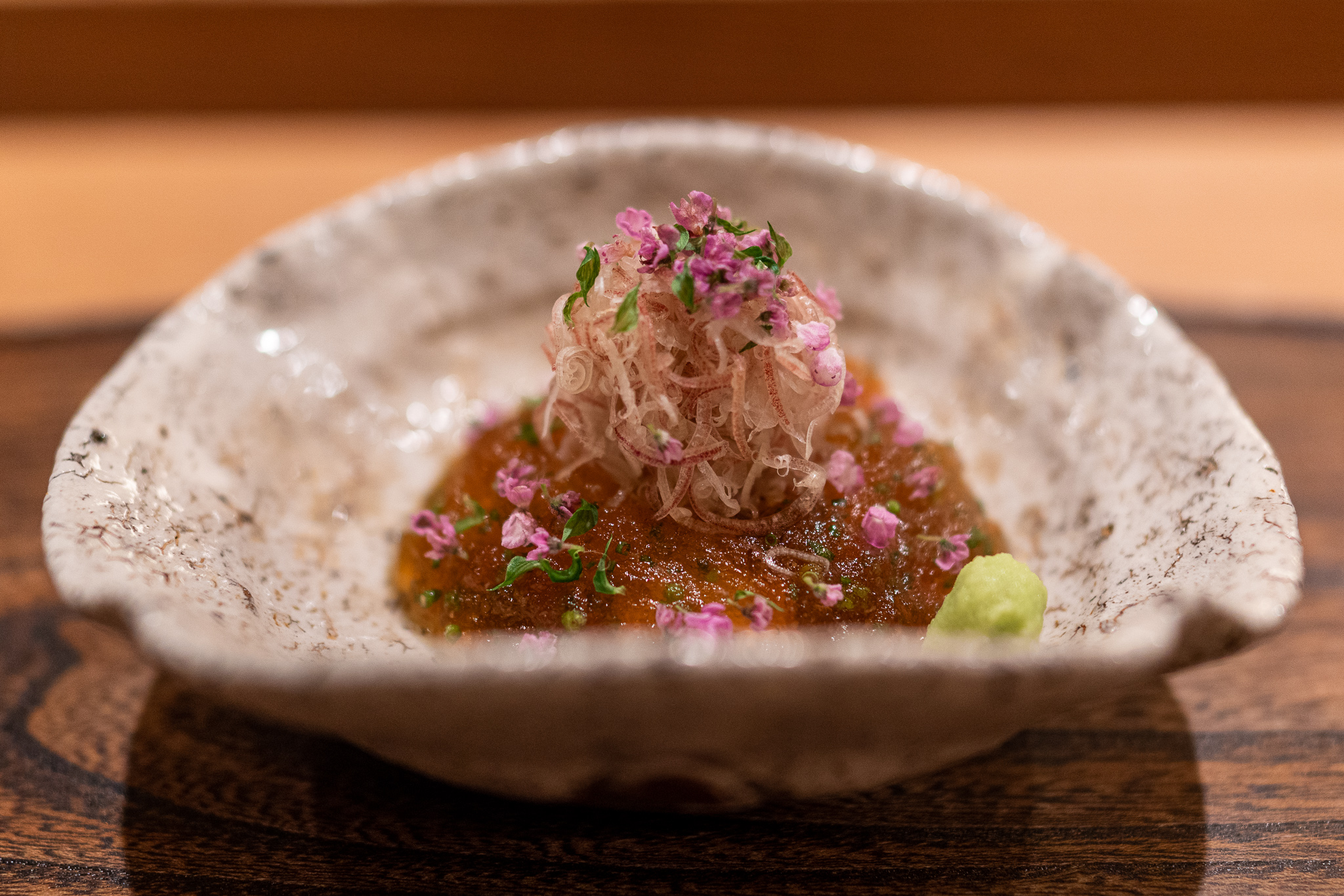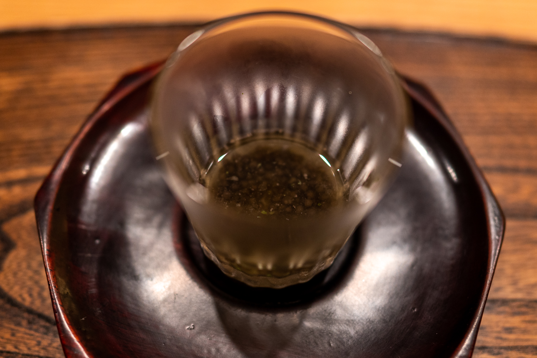基本和食がベースだが、素材選びに置いてはその和食の枠にとどまらずキャビアや松茸、フカヒレ、トリュフなど世界中の高級食材をふんだんに使ってる。それだけなら他の麻布や六本木、銀座などの高級和食屋でもよくやってる手法ではあるが、琥珀さんのすごいところはその高級食材に飲まされない、一つの食材だけが強調されず全体の料理の構成要素としてしっかりバランスを取っているところがすごかった。多国籍の素材が使われてもちゃんと和食で調和が取れてる。