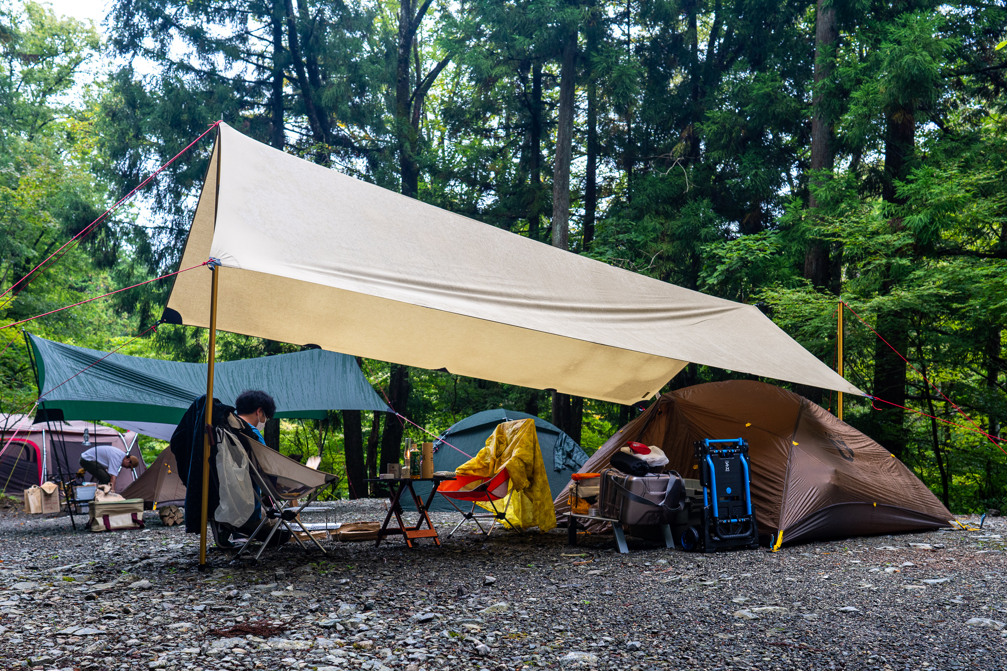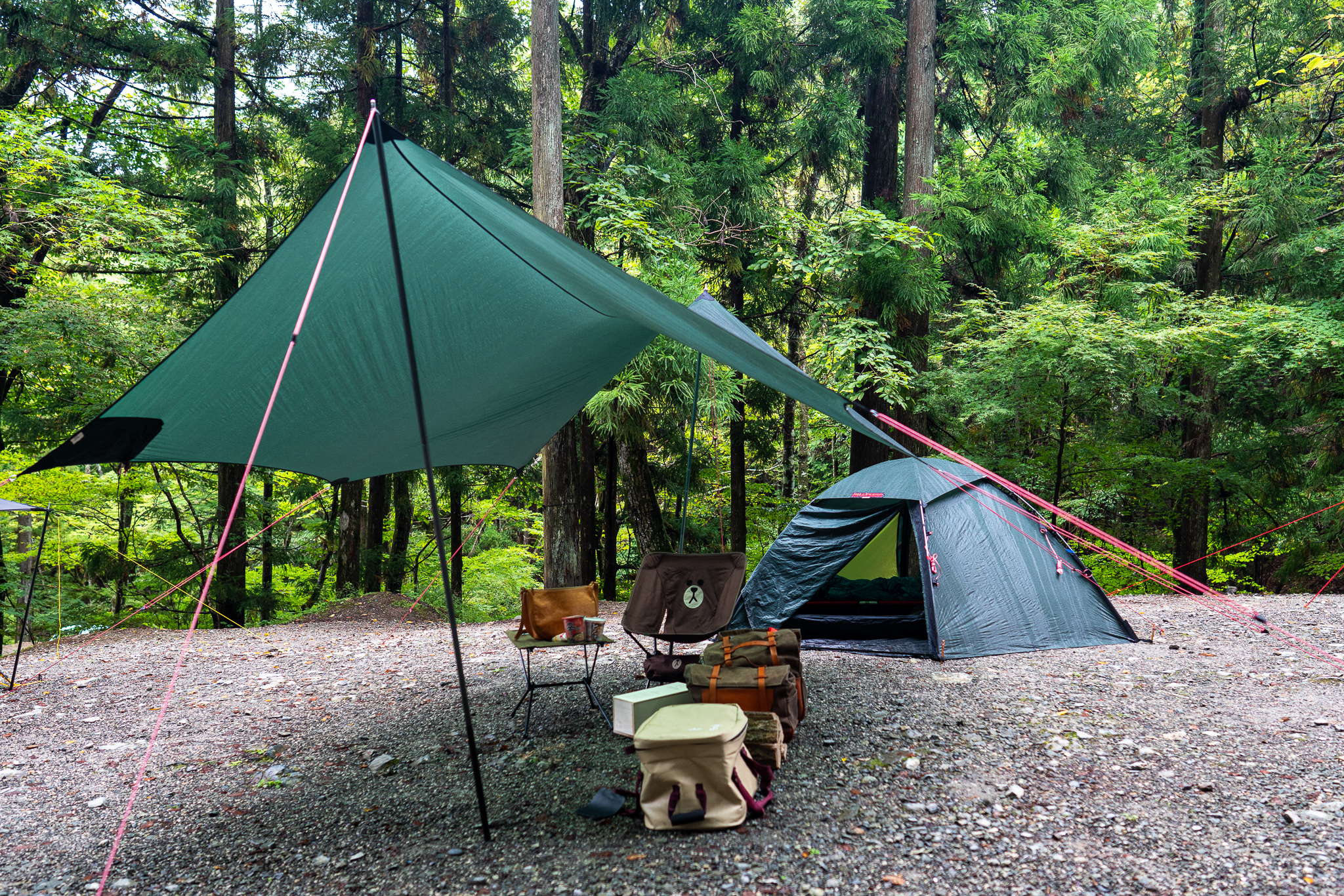 これはいつもの私のソロキャンプスタイル。実はCimarronも持って行ったけど朝からずっと雨だったのでCimarronの設営は諦めて慣れてるStaikaでさくっと設営完了。
