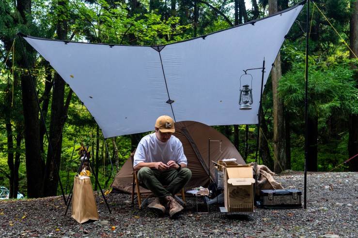 さくっち夫婦はキャンプがこれが初めてで…初めてだよね?!いきなり小川張りでキメてる!揃えてるものもテントはNEMO、タープはTCタープ、椅子はHelinoxなどなど初心者のチョイスラインを遥かに超えてる!さすが検索の達人。先輩風ところか逆に勉強させていただいた…。
