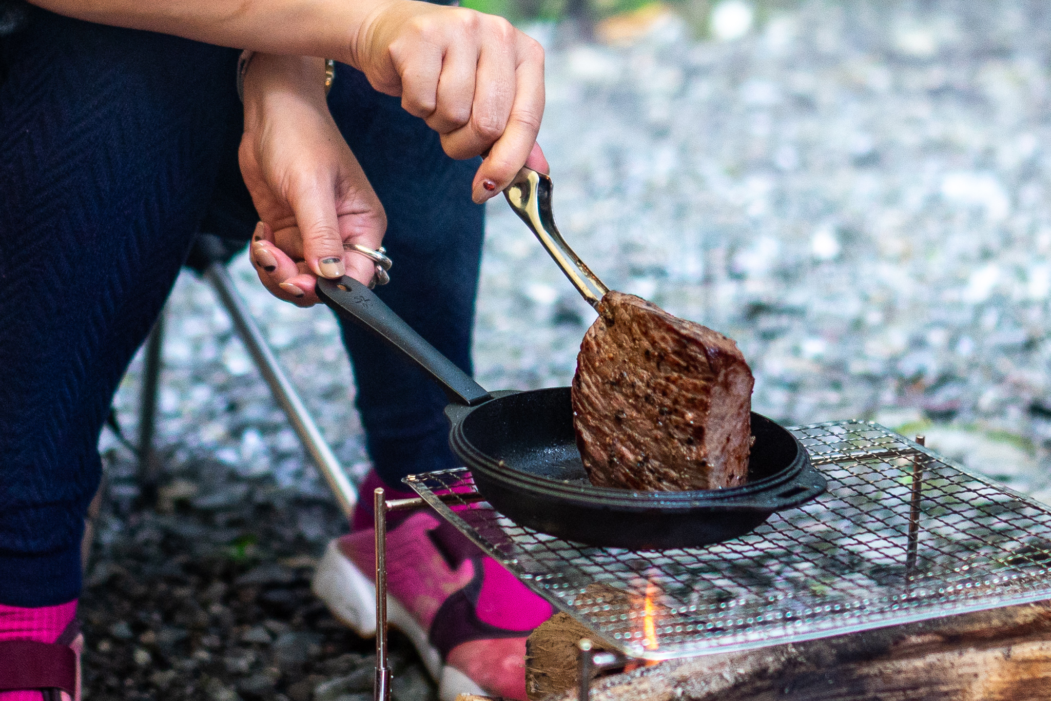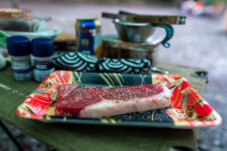後、久しぶりのキャンプなので大好きなステーキを食べようと下拵えをしてたら…