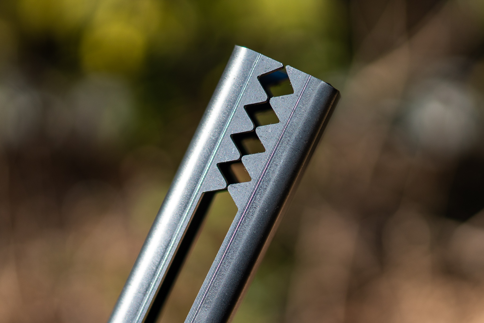 収納時は挟む部分の歯が若干ずれてコンパクトに収納されるけど伸ばしたときはアームの位置を若干調整すると写真のようにちゃんと噛み合うようになるのも気持ちがいい。