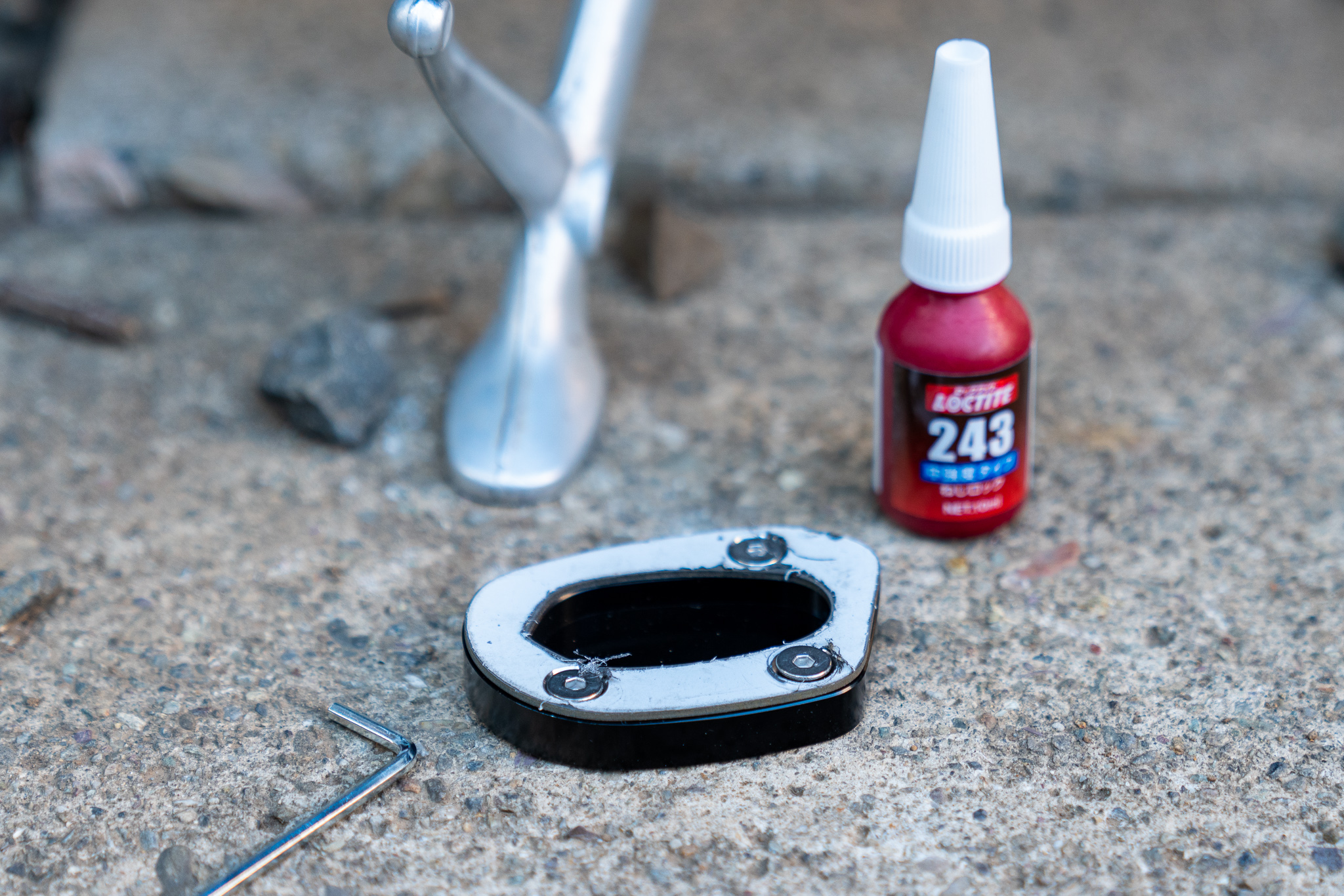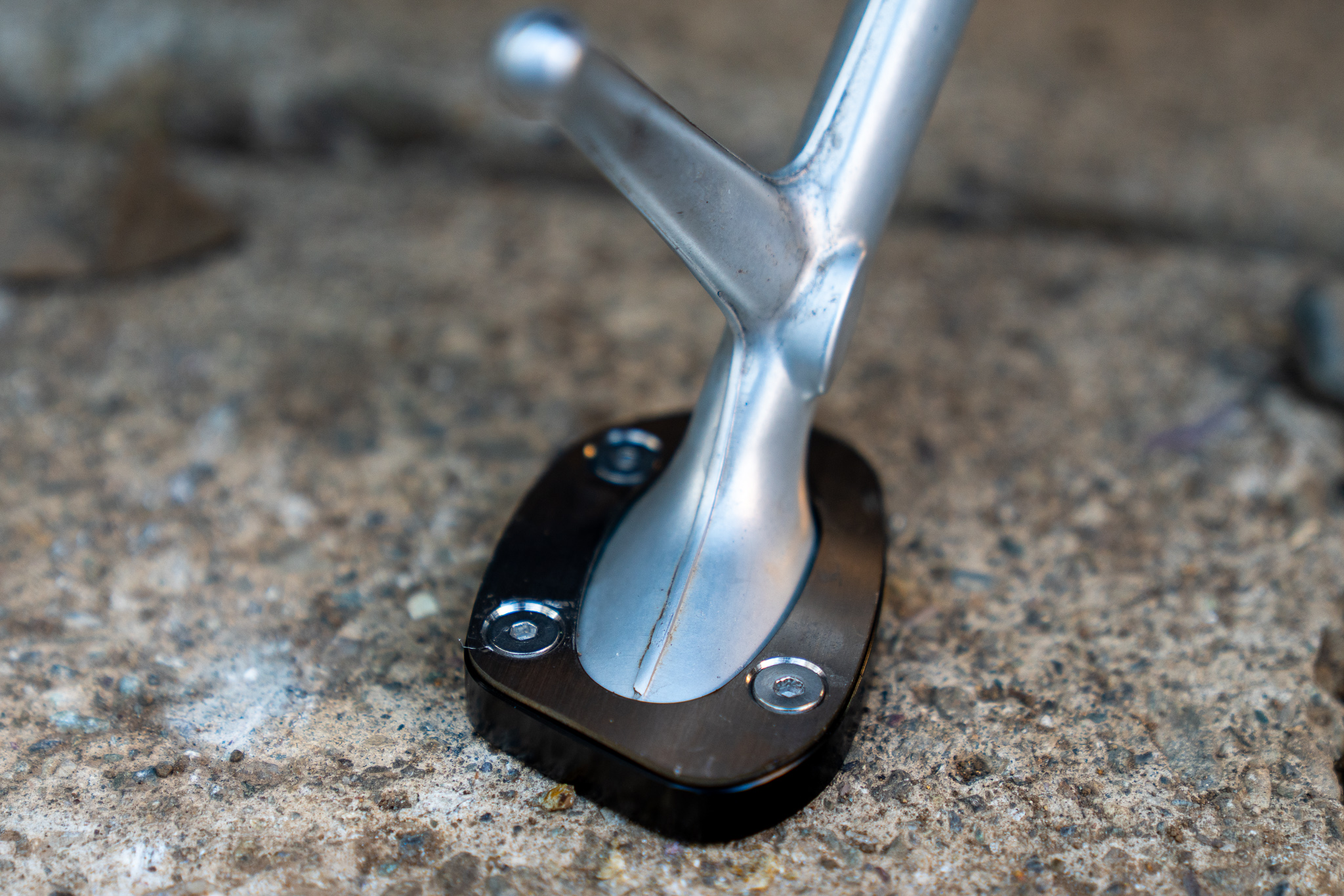 それが先日偶然「サイドスタンドプレート」という単語をどこかで見つけたので試しにAmazonで検索してみたらなんとスラクストン専用のサイドスタンドプレートがあった!そのまま注文して約10日くらいで中国からものが届いた。