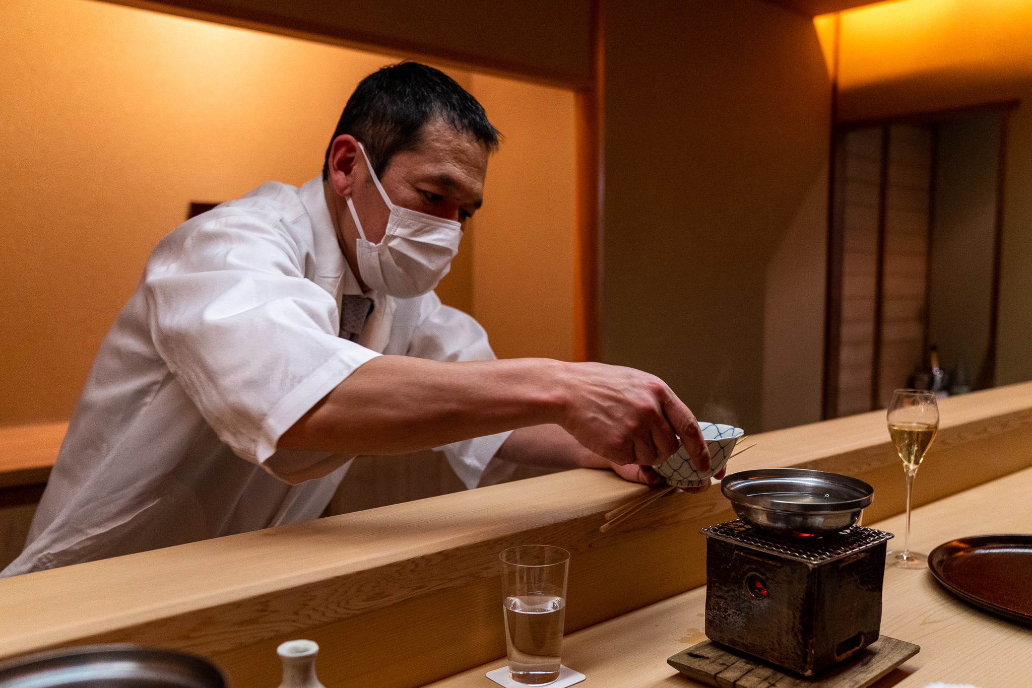 今回はなんと念願のカウンター席でワクワクが止まらない。松川さんは全国的にもトップクラスの和食屋でそののカウンターで料理を食べれるなんて嬉しい限り。実は松川さんは一般予約はもう受け取ってないのでいくら頑張っても自力で行くことはできなくて今回も知人の力を借りての訪問だったけどそれがまたカウンター席でもう頭が上がらない。