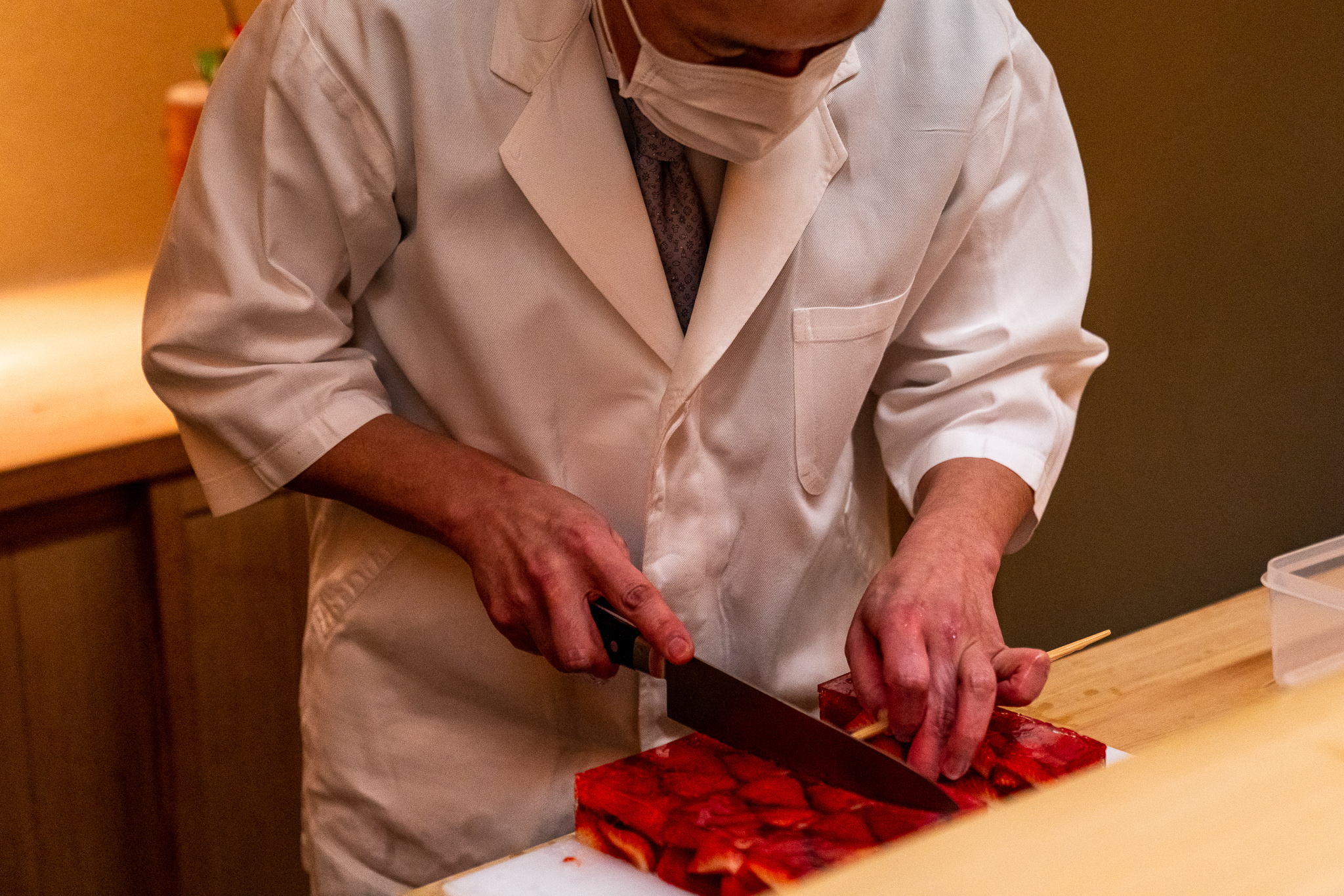 トップクラスの飲食店の大将、シェフらはずば抜けたコミュニケーション能力やユーモアセンスを持ってる場合が多かった。例えば篠原さん、大石さん、新井さんなどなど。それに比べると松川さんはどちらかというと口数の少ない職人肌。少し恥ずかしがり屋的なのもあるしね。でもやっぱり仕事に没頭してる職人の姿はカッコいい!