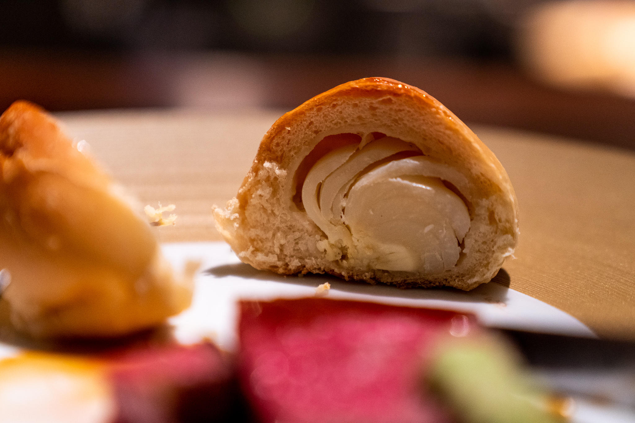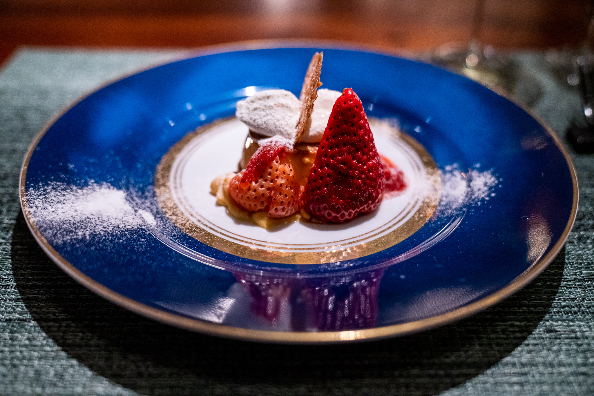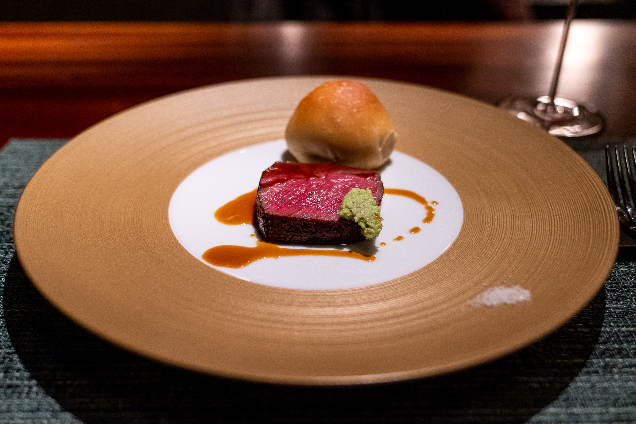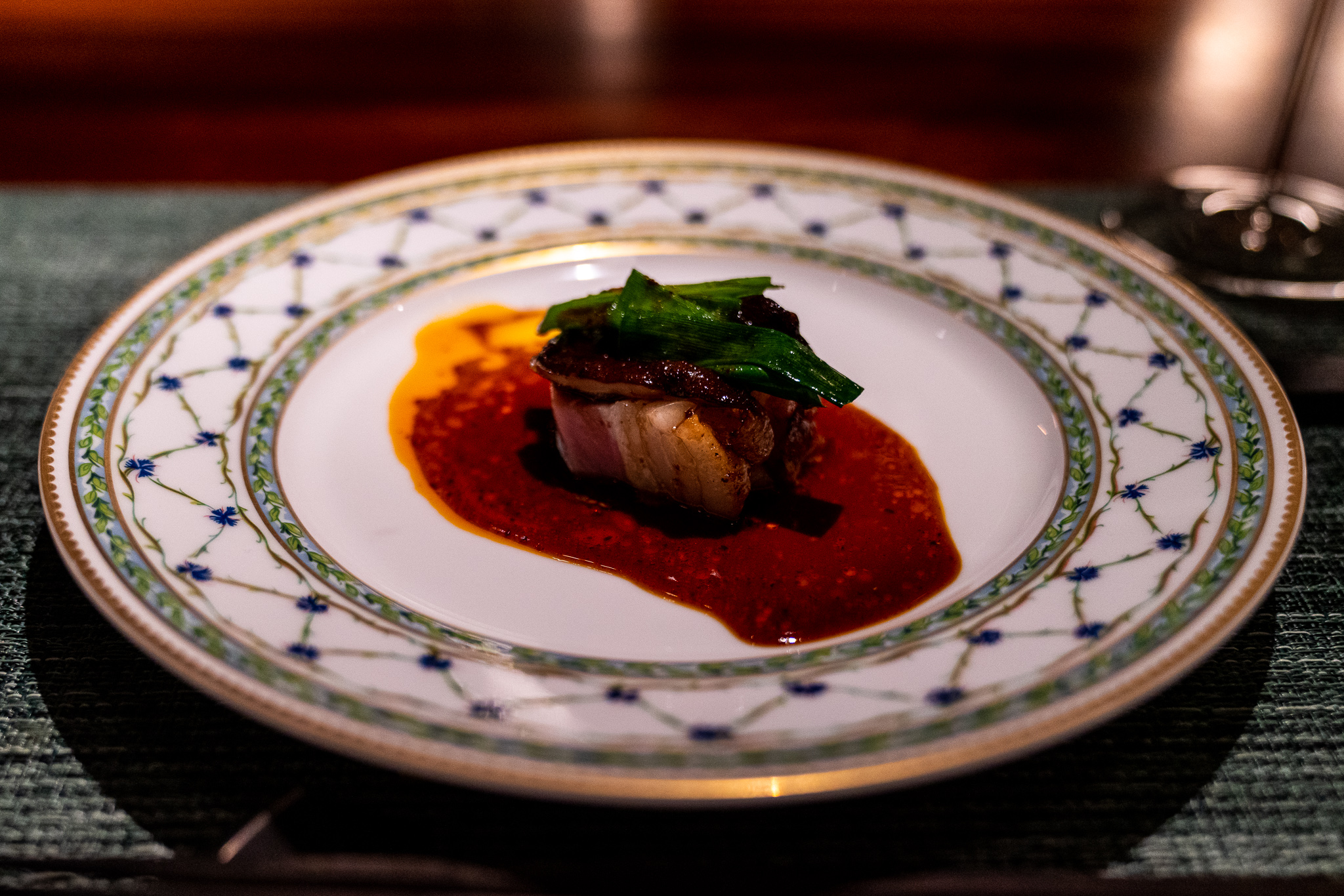 料理は真鯛のコンソメスープから始まるけどここからもうこのお店のアイデンティティーを説明してるようだった。フレンチだけど基本ベースを和食に置いて一番先に「出汁」でこれからの料理の方向性に対して客とコミュニケーションを始める。基本的に調味料は塩以外はあまり使われてないようで何より素材の味そのものを最大限引き出す方法を研究して世の中どこにもない蒼だけのオリジナリティ溢れる料理を創り出す。特に原材料の味が120%濃縮されたかのような濃い味なのに全くしつこくなく後味がすっきりする。全体コースから見るとそのボリュームは結構なものだがすんなり最後まで美味しくいけちゃうのも全体の構成、味付け、バランスがいいからかも。