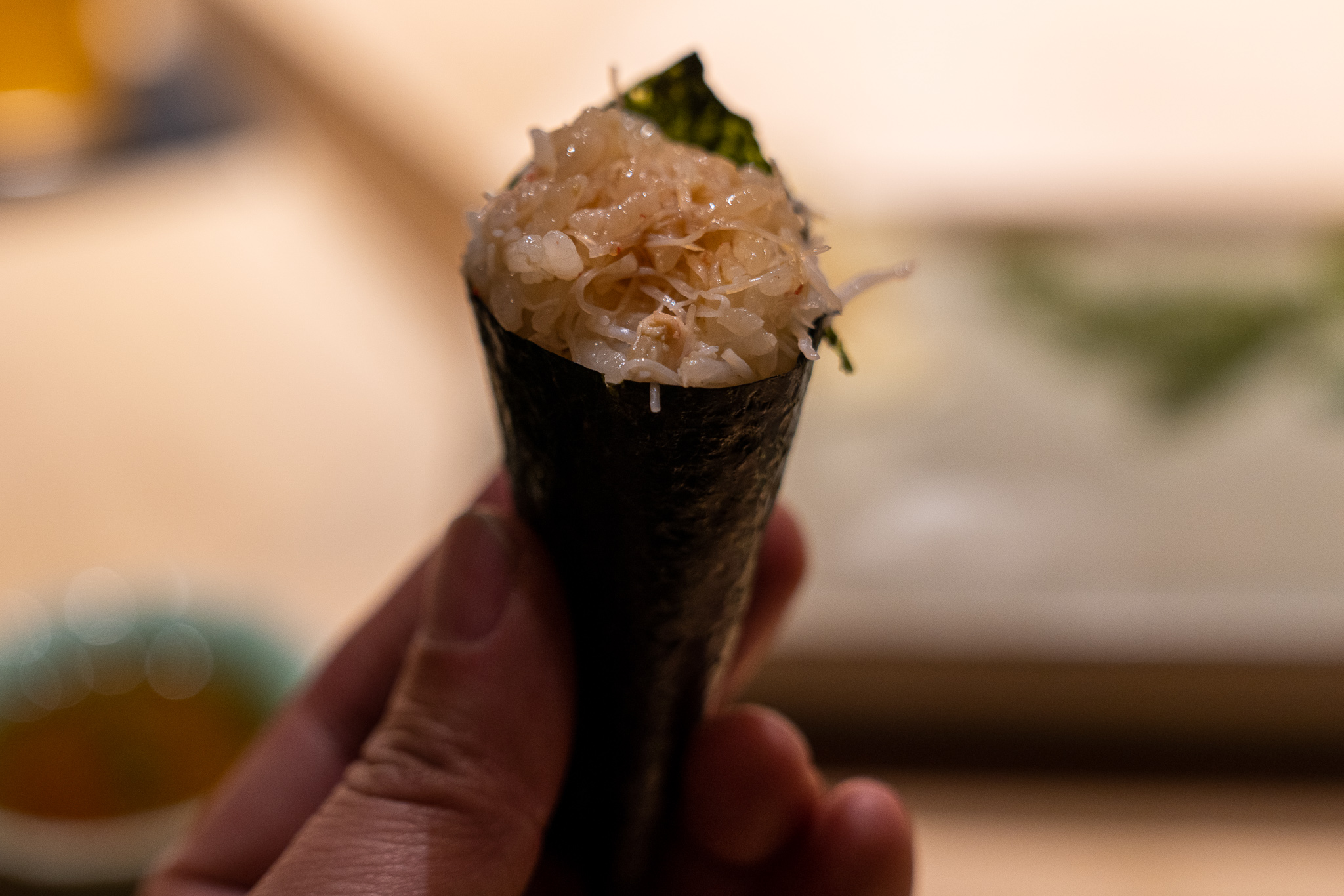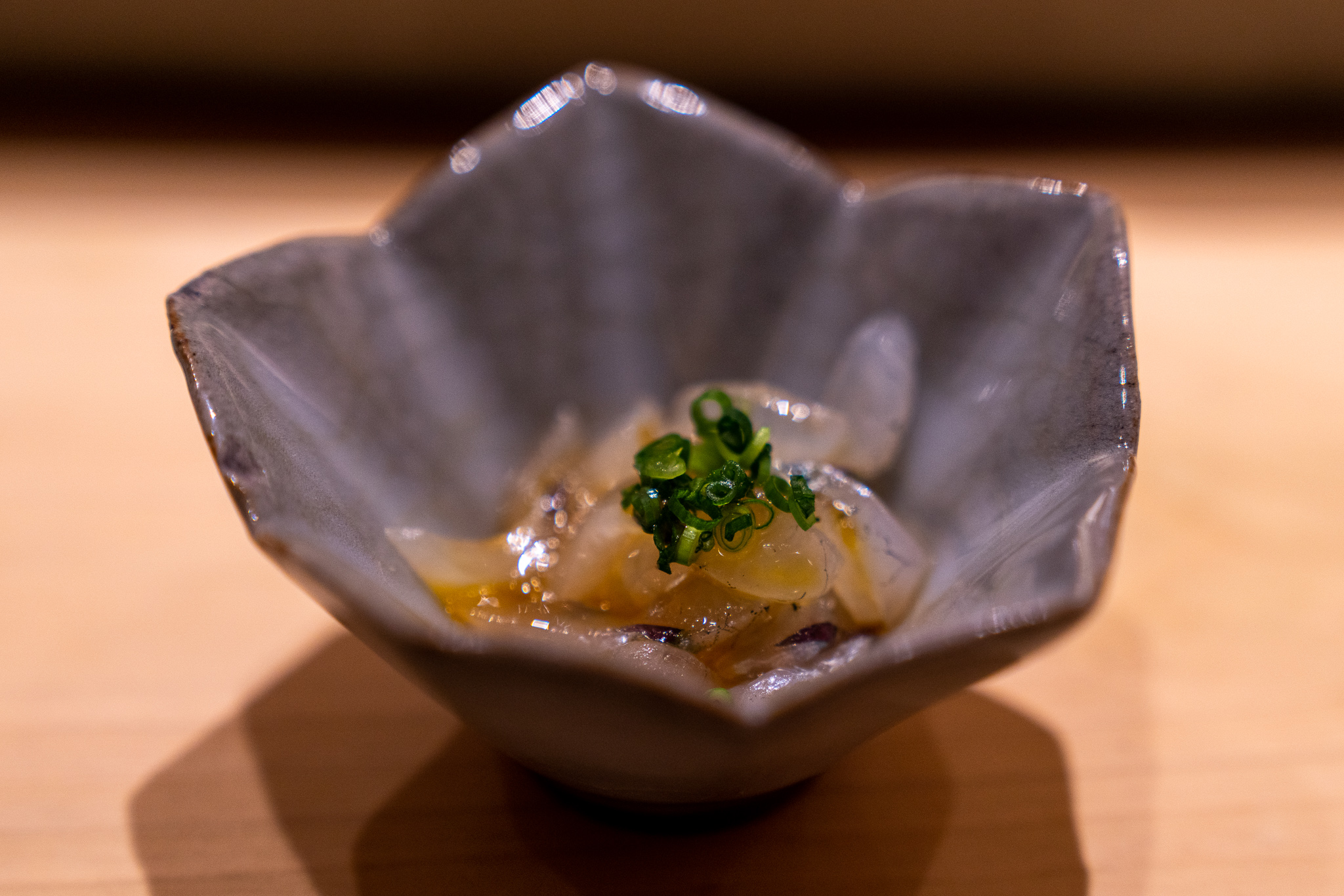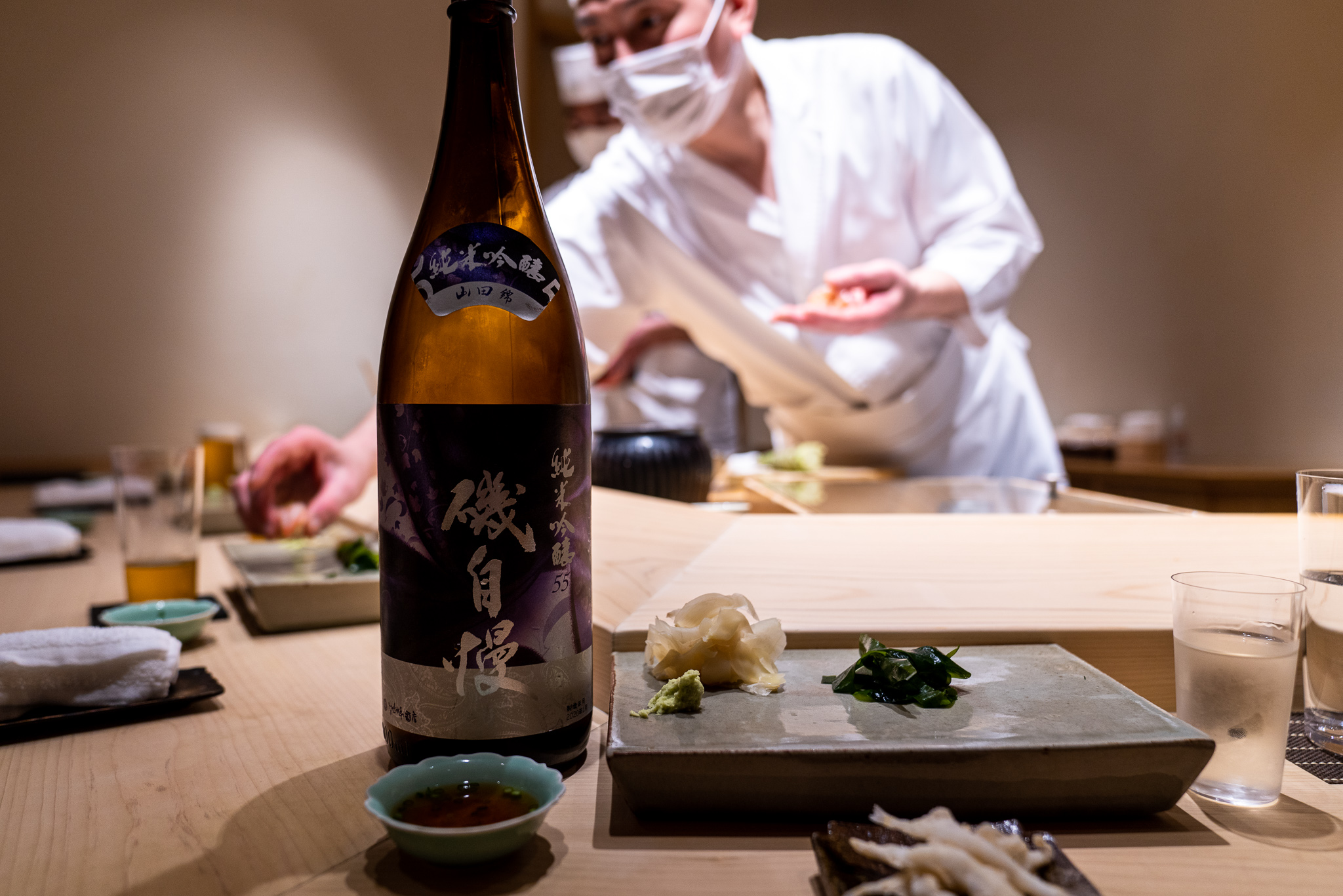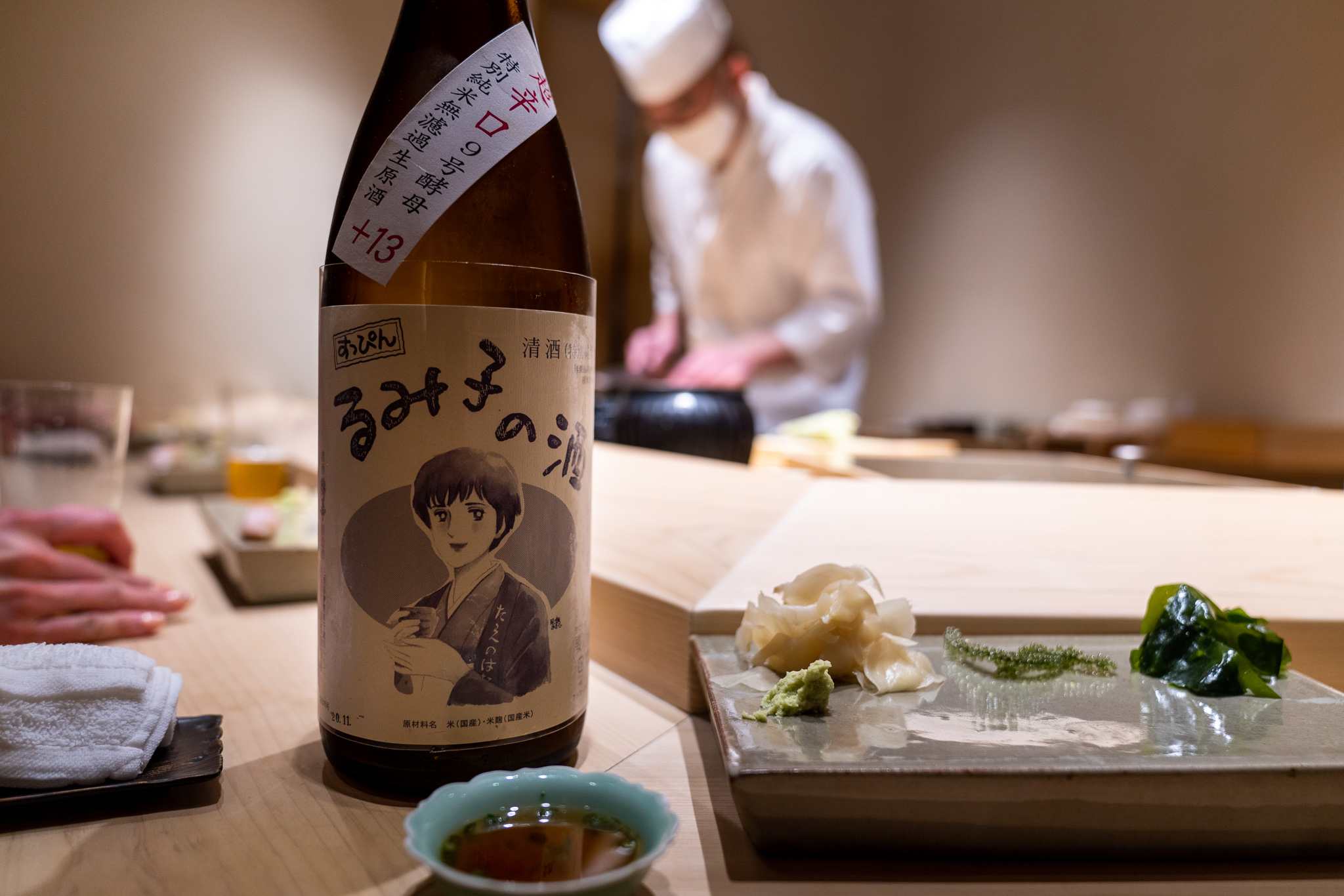 なのでコースの基本構成はつまみと握りが交互するすし匠スタイル。また全体的にすし匠の影響が濃く残ってる。しゃりはネタに合わせて3種類を使ってるけどそれほど主張が強くなく全体のバランスを重視してる感じ。華麗さよりは真面目な丁寧さが心に残る。ボリュームもちょうどよくてコースを全部食べ終わっても何点かは余裕で注文できた。また日本酒のライナップがよくて岩澤さんおすすめのものから自分好みのものも注文できて嬉しい。