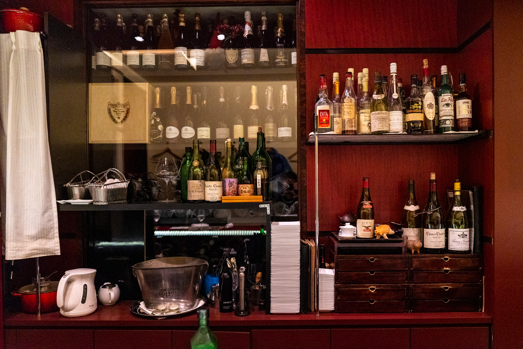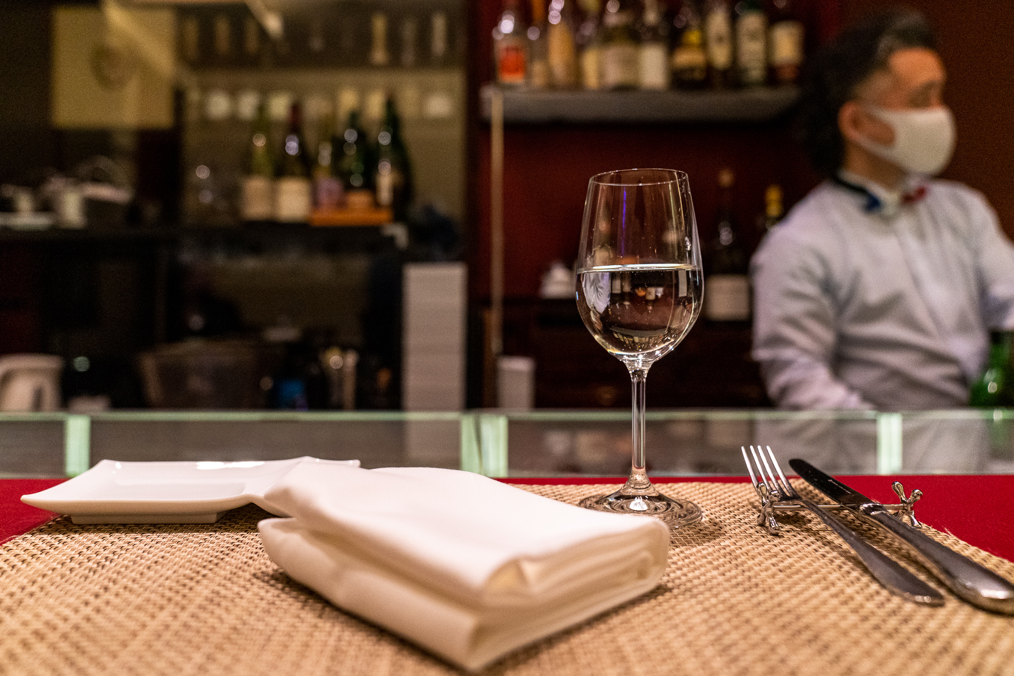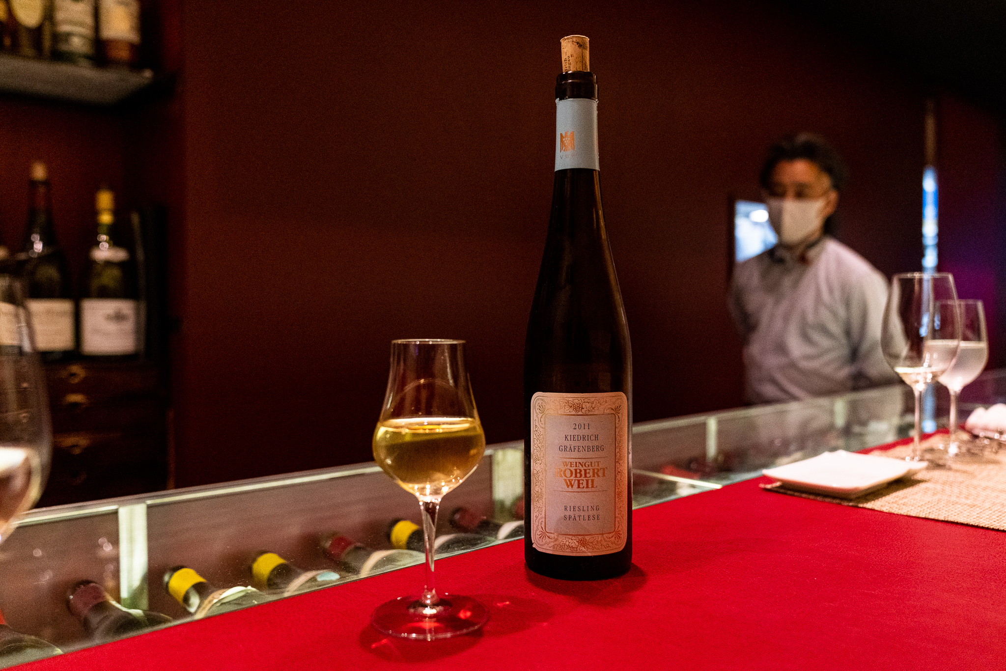 カウンターの後ろに巨大なワイン庫倉庫があってたくさんのワインが積まれてる。進藤さんがワインを取りに倉庫に入るたびに今回はどんな美味しいワインを持ってくれるかなとドキドキが止まらない。