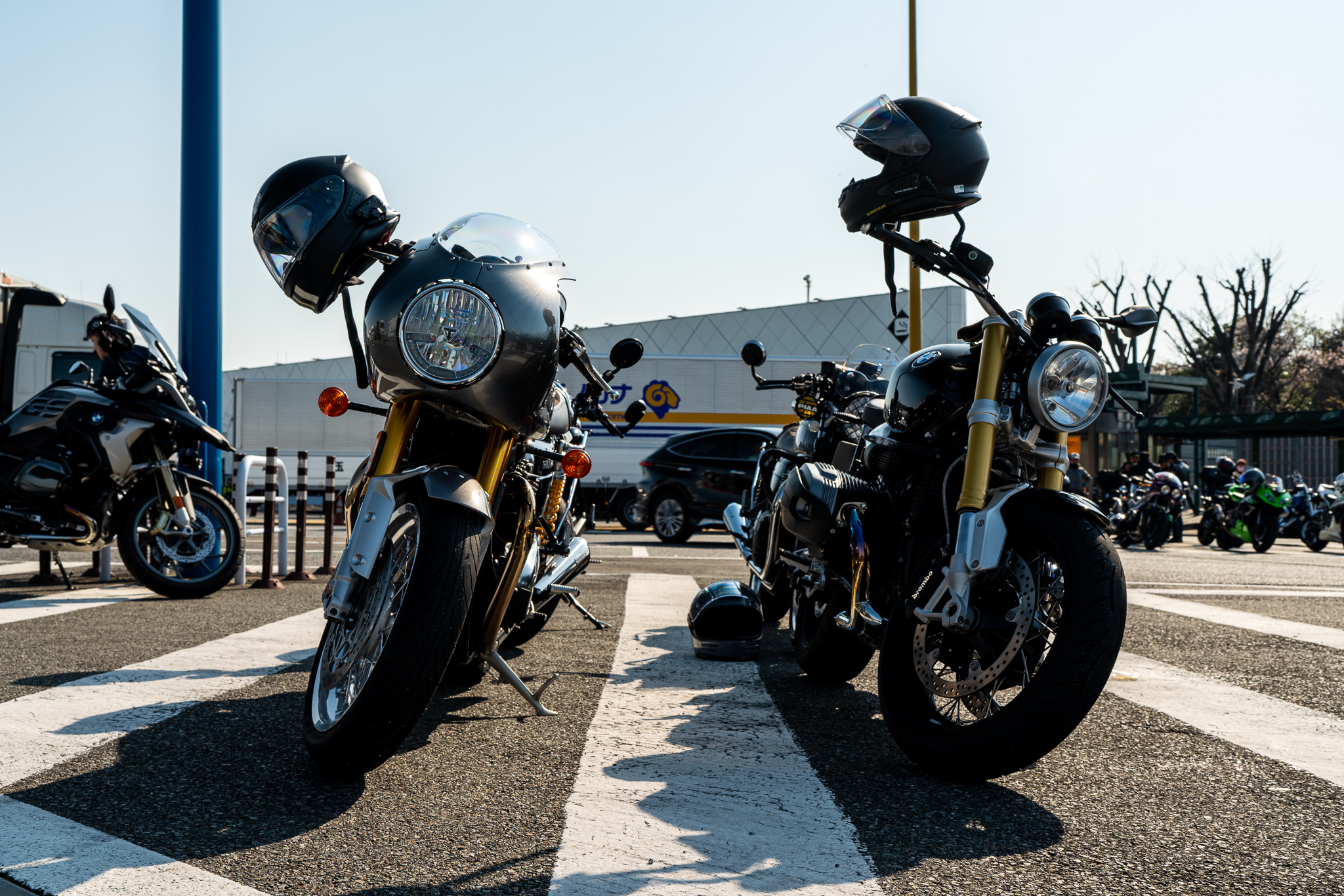 30分も早く着いたしまだ揃ってないと思ったらすでに皆さん着いていて自分が一番ビリだった!さすがすぎる!この日は緊急事態宣言が解除されて初めての週末で天気もよかったのでたくさんのバイクと車で混んでいたけど皆嬉しそうな顔が素敵だった。