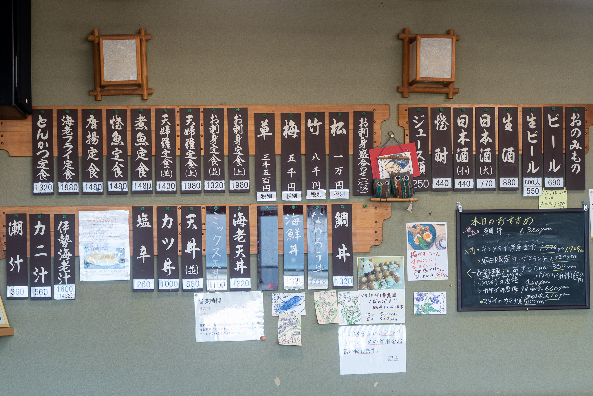 メニューはたくさんあったけど初めてなのでメインは鯛丼一択。伊勢海老汁も気になったけどこの日はあいにく伊勢海老の水揚げがなかったっぽい。