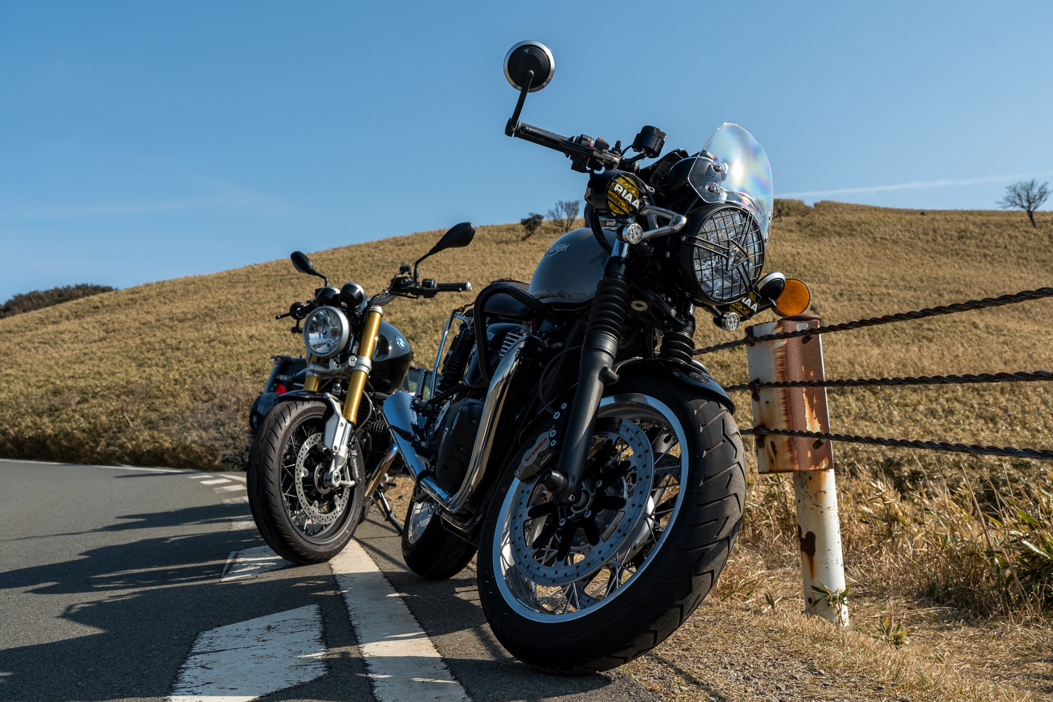 天気が良ければ富士山と一緒に写真が撮れる達磨山北側登山口の駐車場にバイクを停めたけど微妙に富士山が映らなかったのでtomさんの素敵なr9tとツーショット!実はここ駐車場も狭くて急傾斜なのでバイクを停めにくく工夫して停めてたら自然にこのようなアングルになった。素敵。