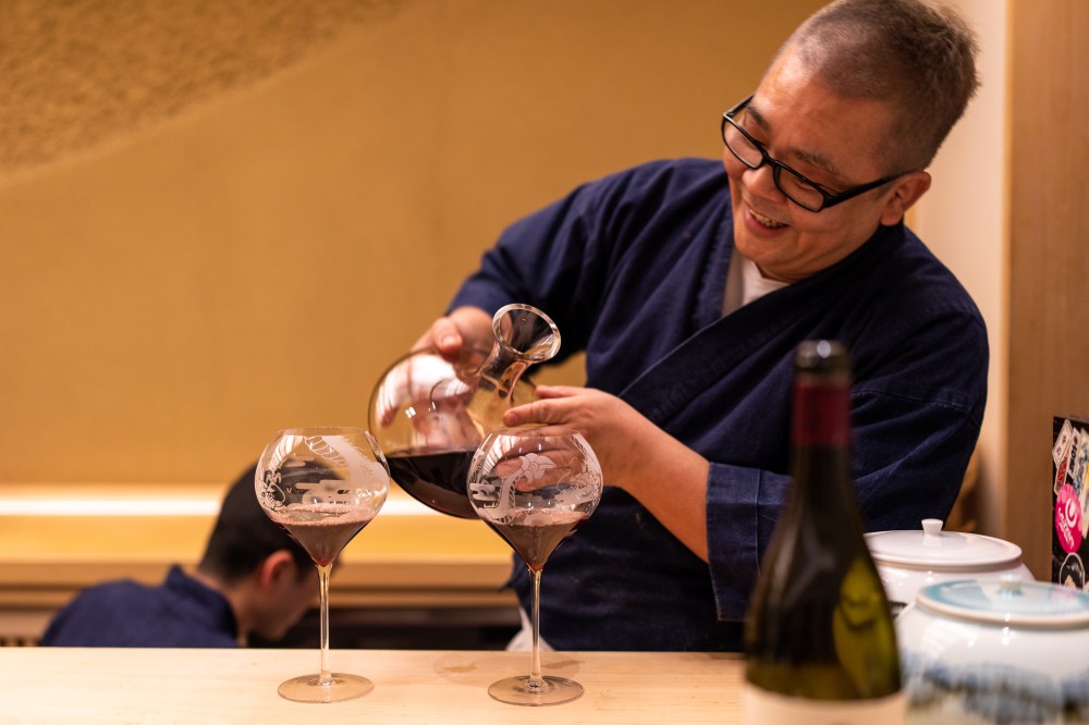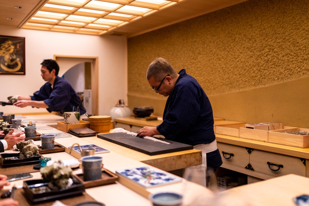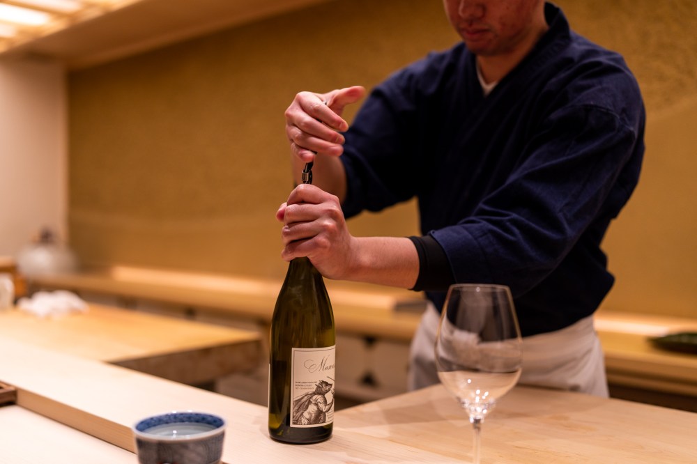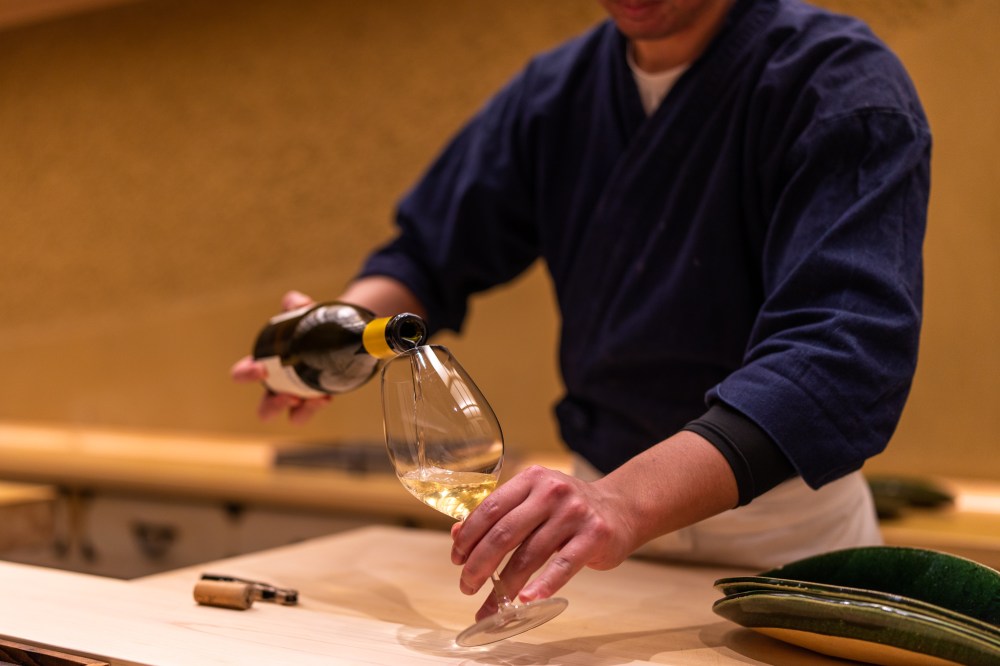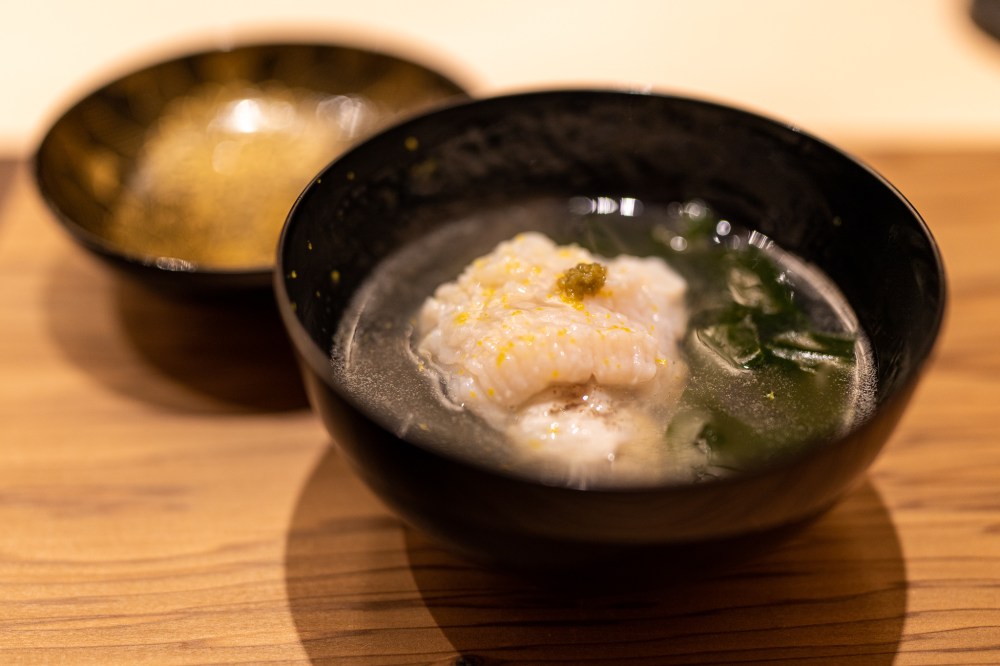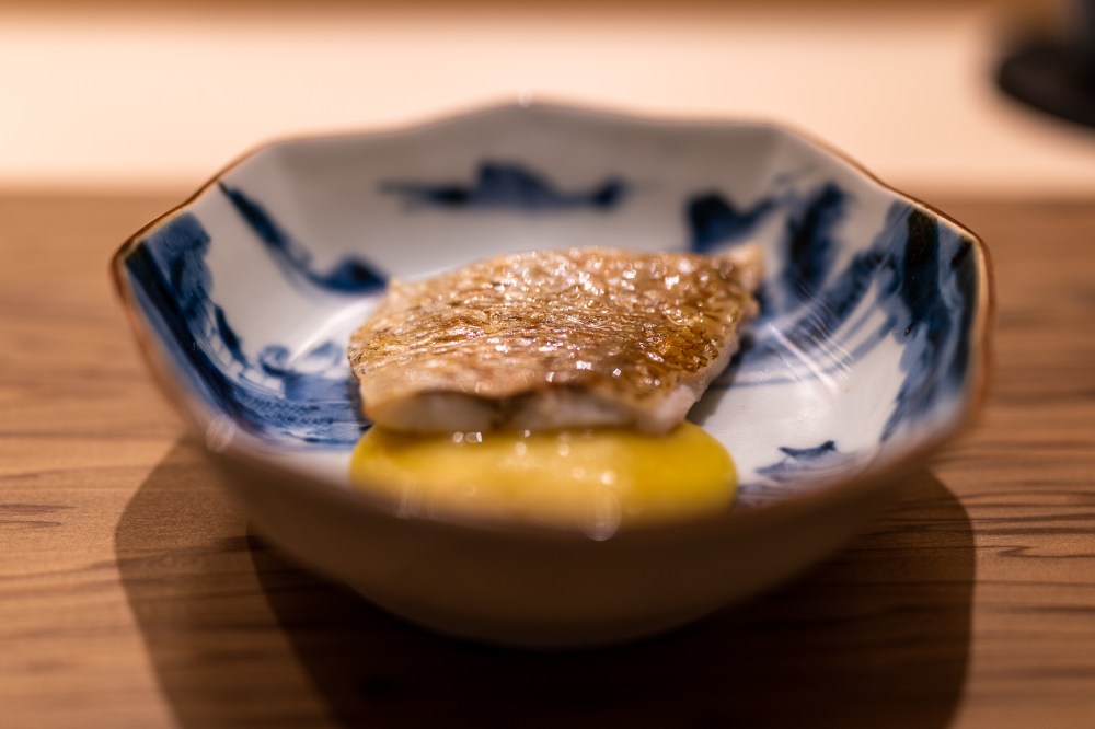 予約時間は18時だったのに10分くらい早く着いてしまった。お店の前で18時まで待つつもりだったのにスタッフさんが出てきて中へ案内してくれた。開店時間まで外で待たせるお店が多いのにそのホスピタリティーが嬉しかった。大将も支度中だったのに笑顔で歓迎してくれた。気さくで面白い大阪のおじさんな感じの佐伯大将は人当たりがすごくいい。スタッフさんもみんな笑顔で明るい感じで大将の人の良さを表してる。
