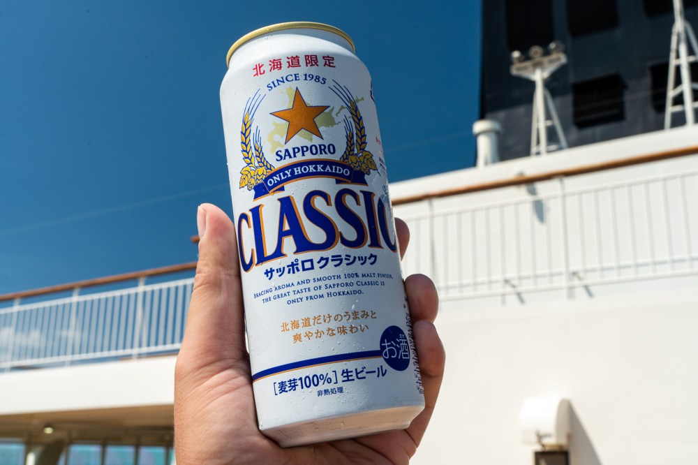 すべてが予定どおりでそんなに待たずに定時に乗船できた。船に乗ったらまずサッポロクラシック!もう気分は北海道でテンションが上がりまくる。その勢いで一気に3本くらい飲んでしまった。