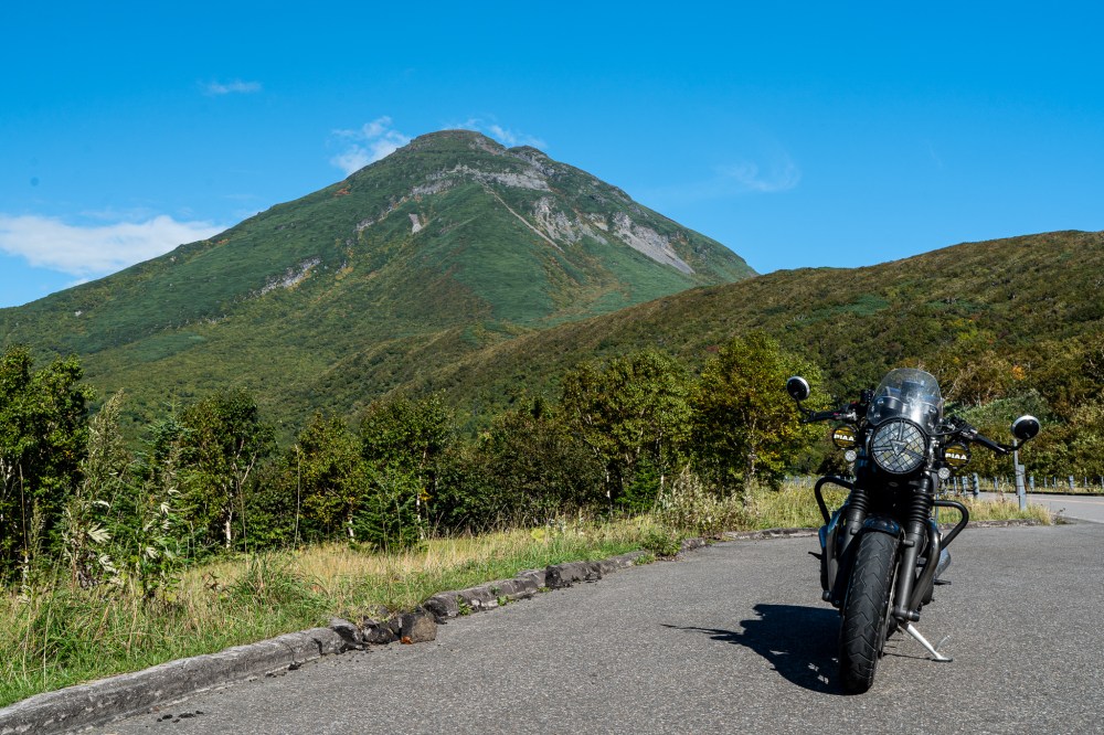 軽くなったバイクで大大大好きな知床峠に飛んでいく。さっき漁協婦人部食堂でご飯食べてるときは知床峠に雲がかかってて心配したけど雲は全部去っていって綺麗に晴れてきた。嬉しすぎて上る途中でまず羅臼岳と記念写真。こんなに綺麗に羅臼岳が見れるなんて嬉しすぎる。