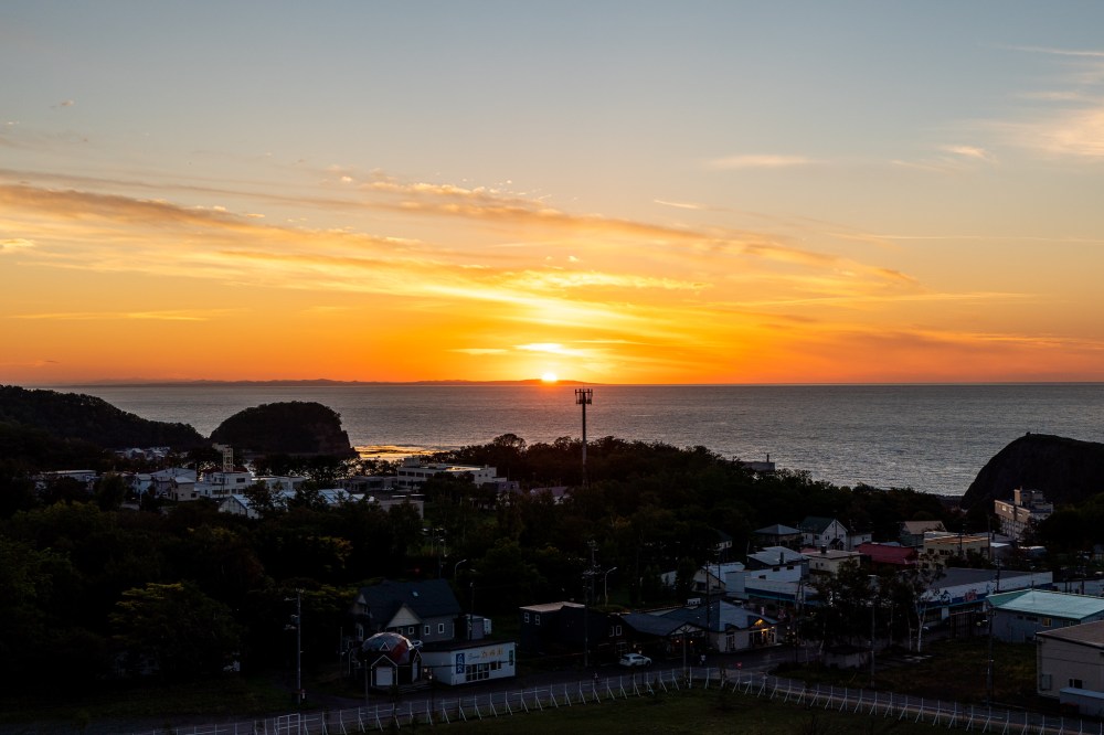 ホテルに帰って温泉に入って洗濯して部屋でサッポロクラシック飲んでたら窓からウトロの夕陽が見えてきた。今日も夕陽が美しい。