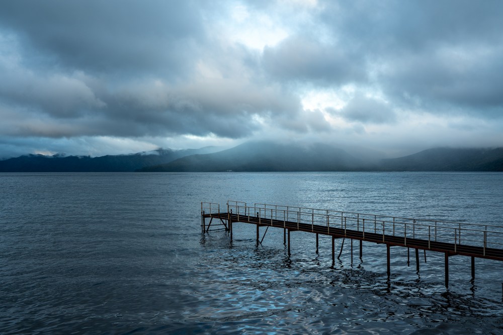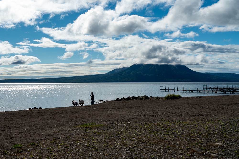 残念ながらまだ濃い雲がかかっている。少し明るいところもあるので晴れてくるとは思うが、多分すぐには厳しそう。それでも早朝の支笏湖は美しい。
