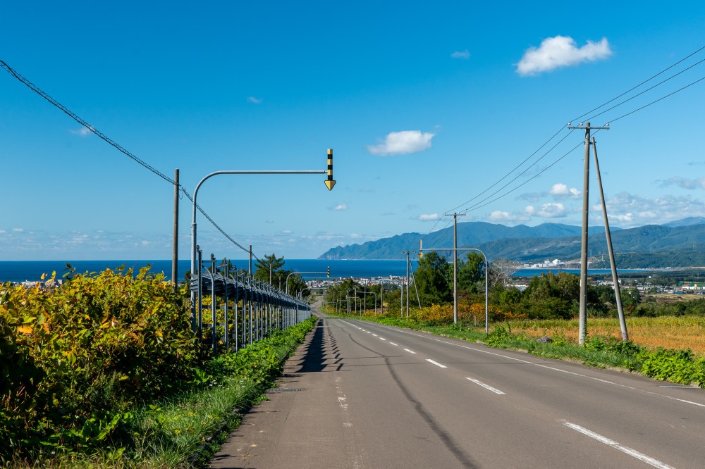 ニセコパノラマラインを降りて共和町に入ったら遠くに海が見えてきたが、それがビックリするほど青くて綺麗だった。これが積丹ブルーなのか!期待に胸が高鳴る。
