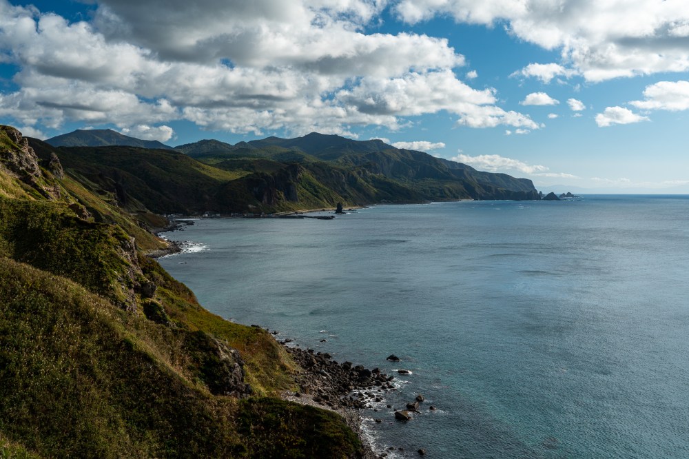 神威岬に向かって国道229号を走っていると左側に広がっている海が綺麗すぎて前に進めるのが難しいくらいだった。この二日間悪天候の中で頑張ったのをこの海が全て償ってくれているかのように感じた。