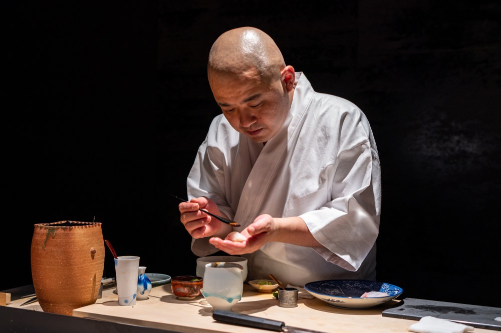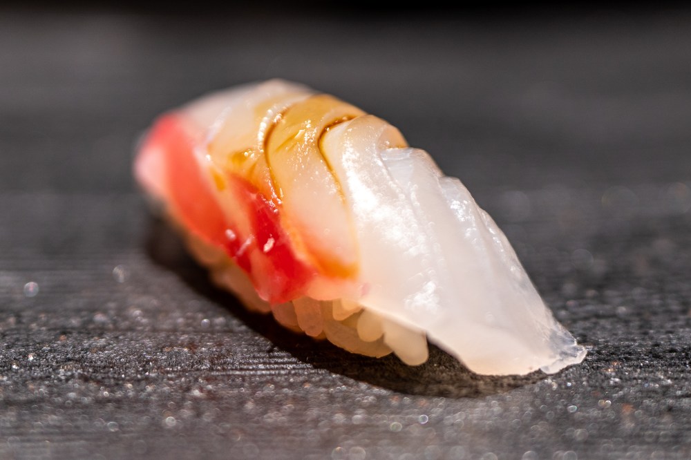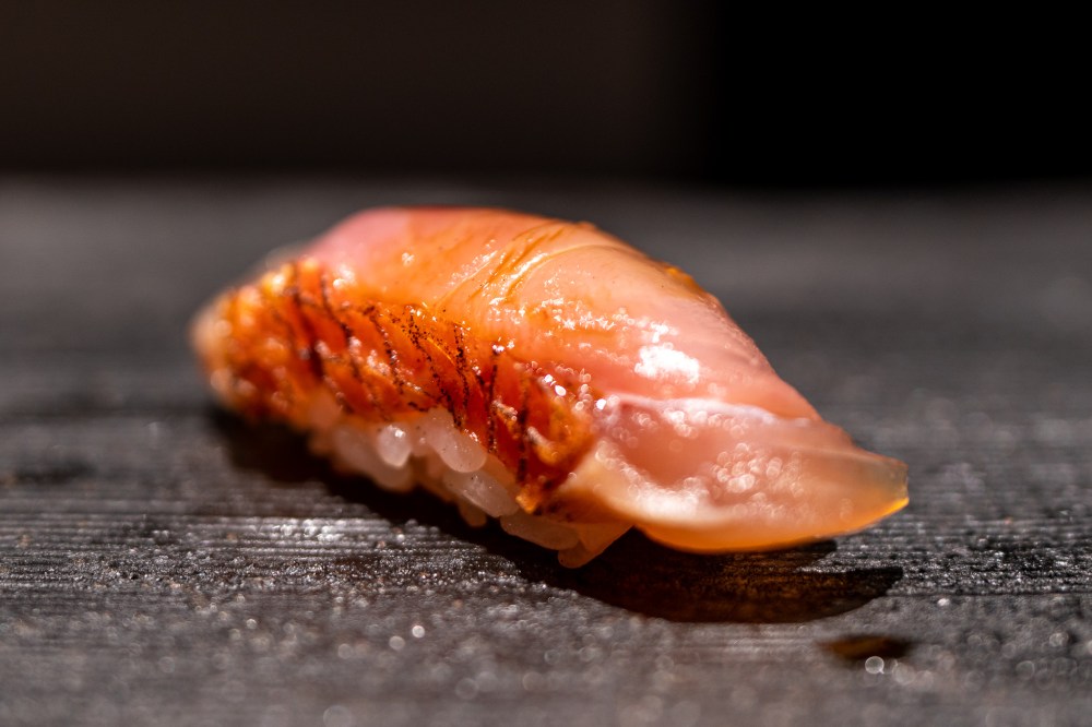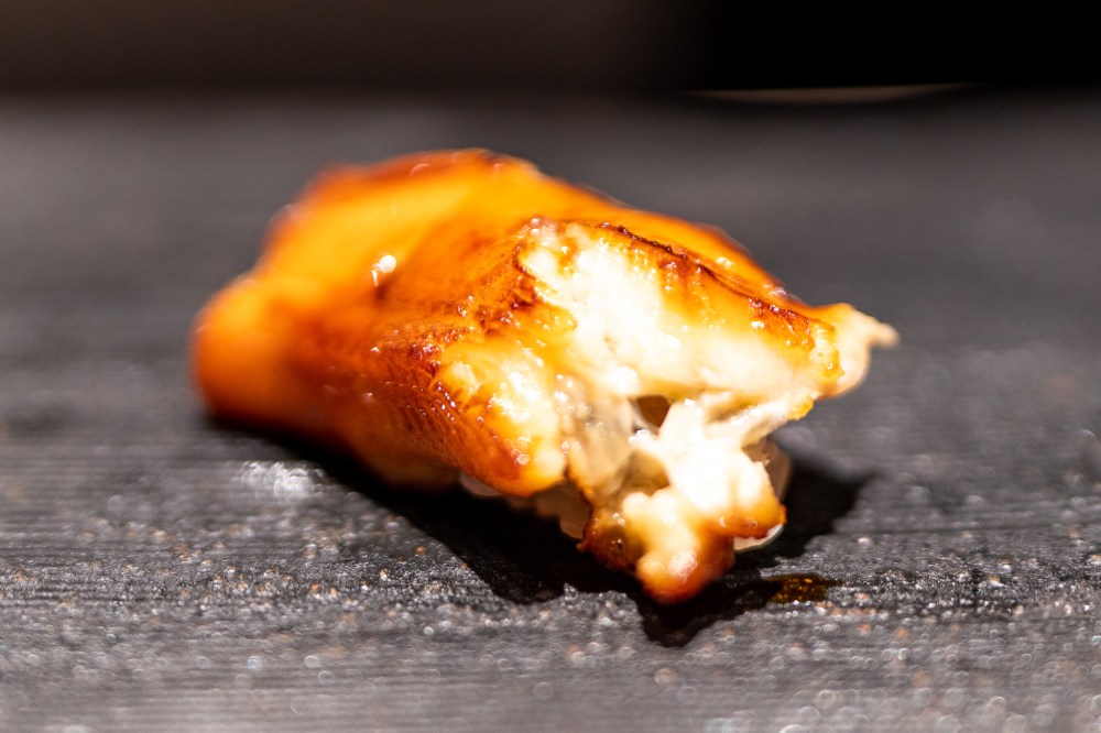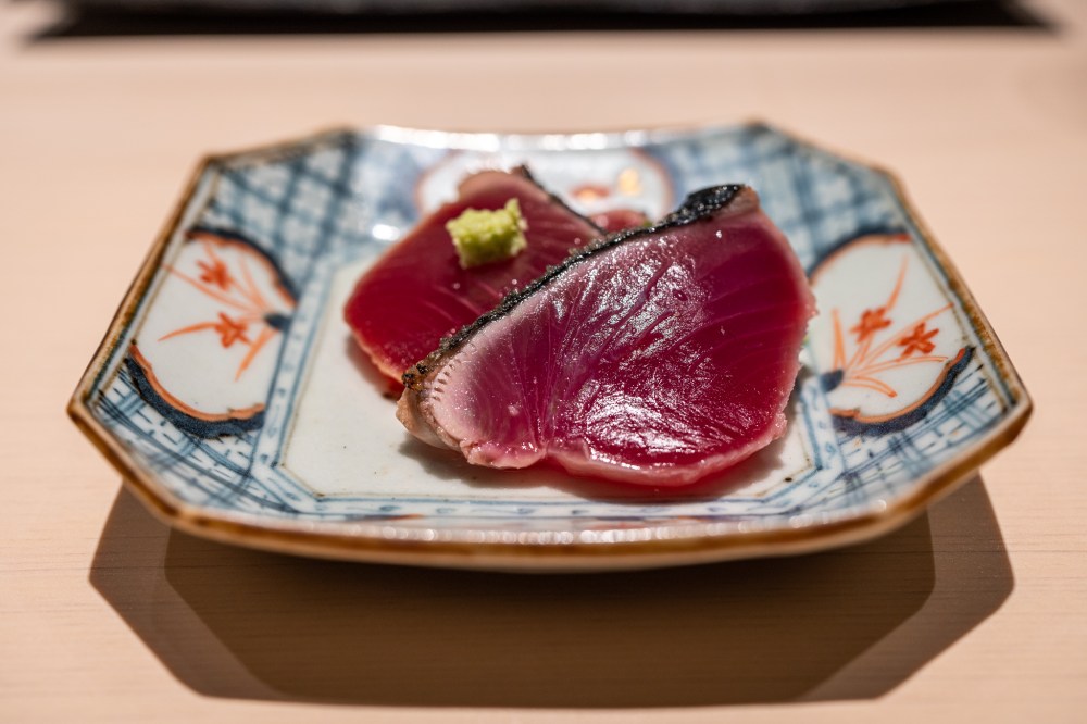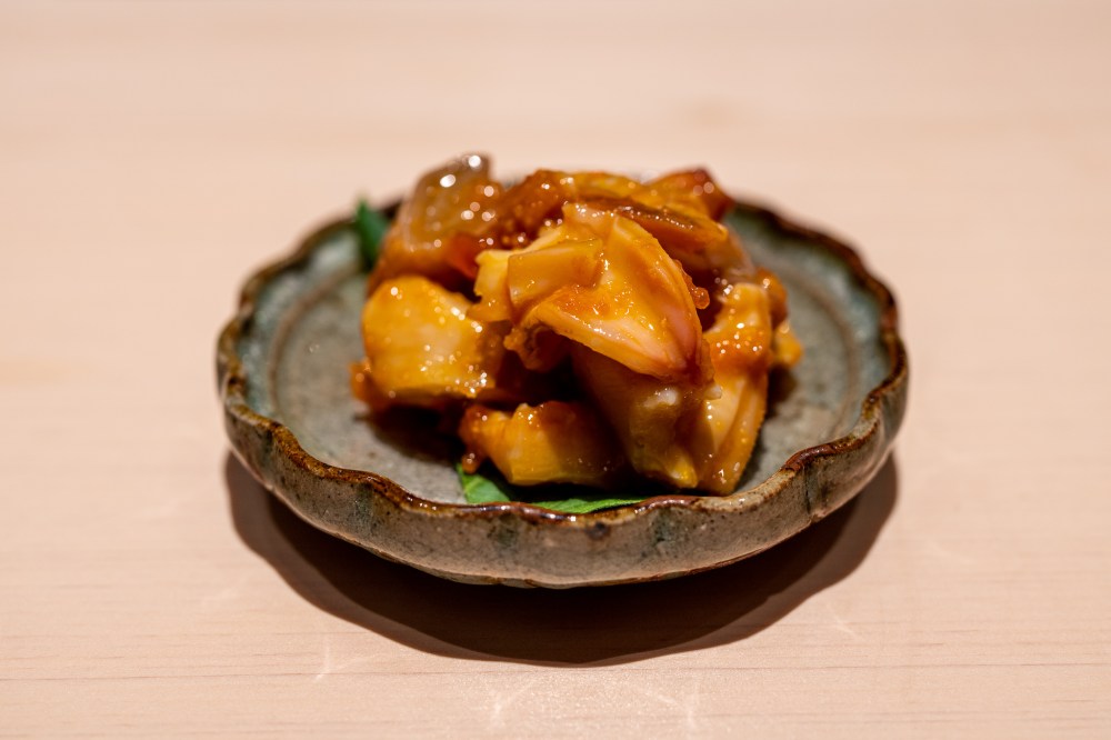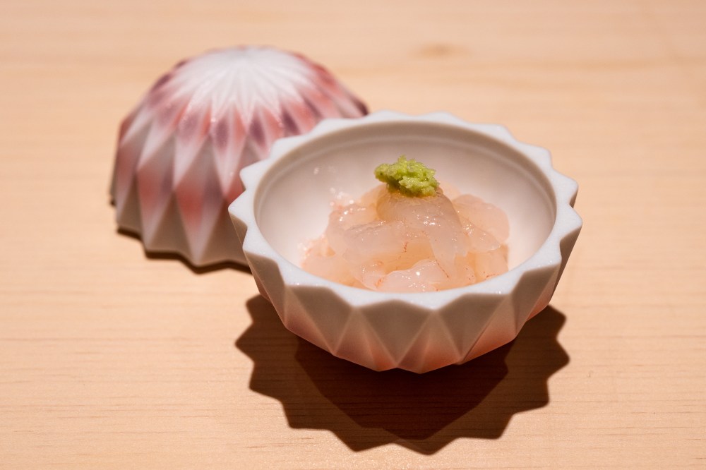 つまりから握りへとオーソドックスな構成でありながらも自分のオリジナリティーを出すための工夫をいろんな所から見受けられる。まだ難波さんの影響は濃く残っているものの自分のクリエイティビティで変化を試している姿が印象的だった。まだ弟子はいなくて一人で仕入れから仕込み、調理を全て行いながらも一切妥協しない、そのストイックな姿勢からは修道僧のような雰囲気まで滲み出している。