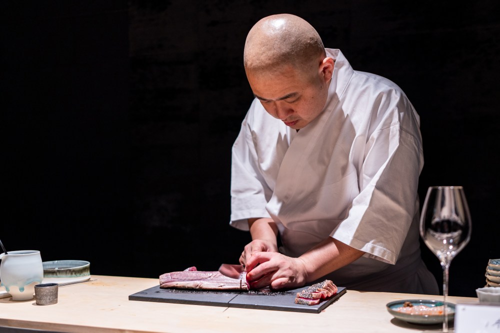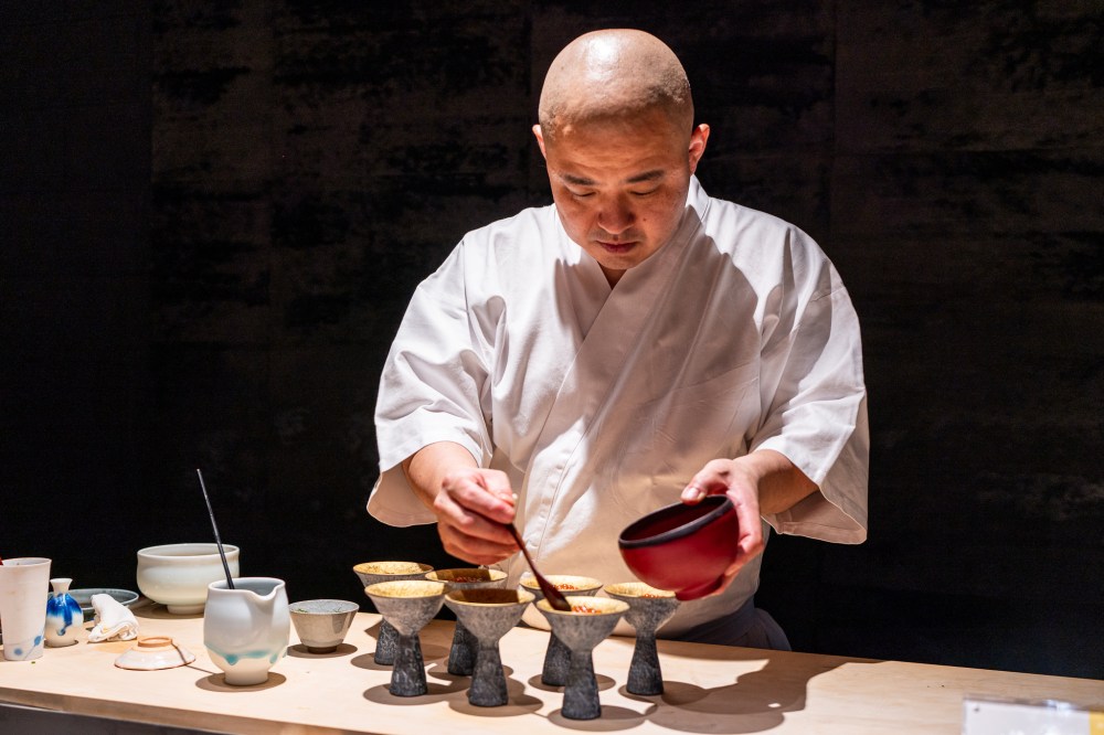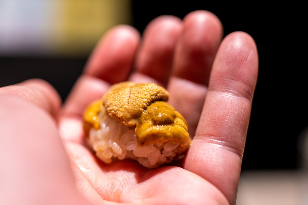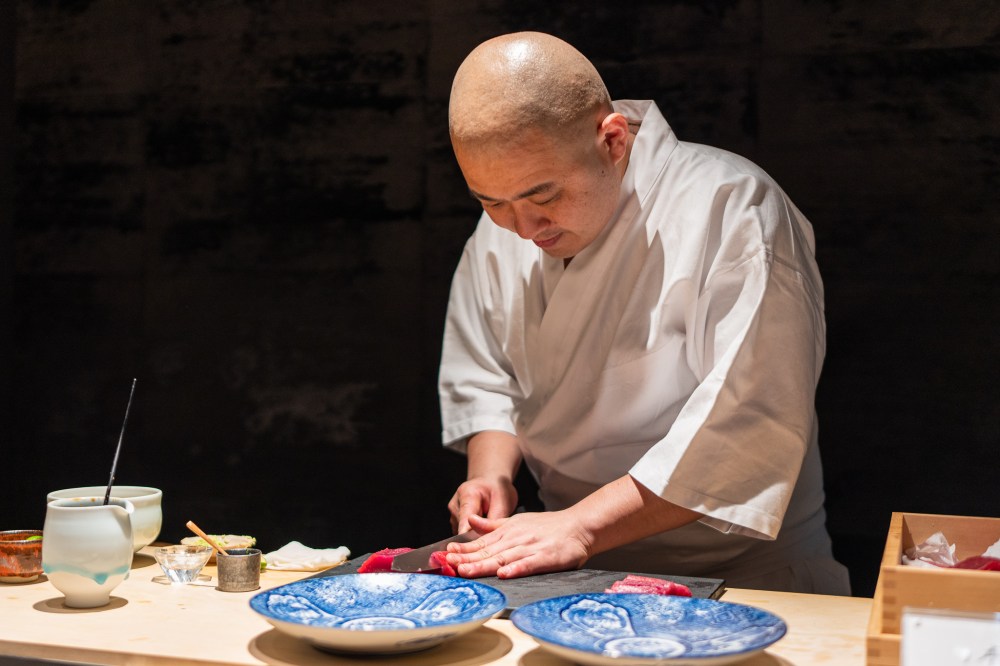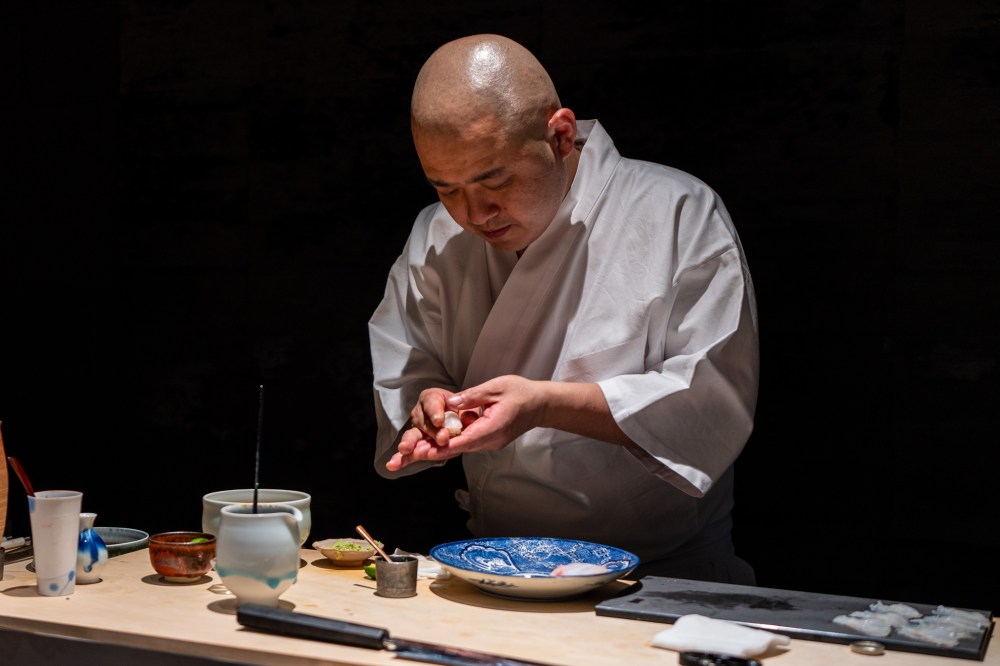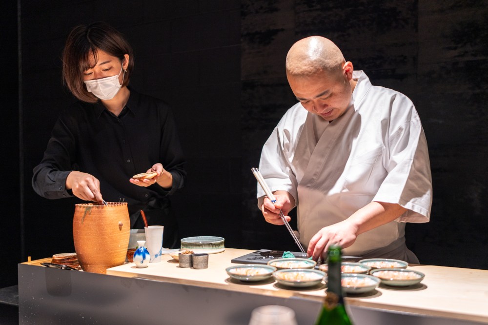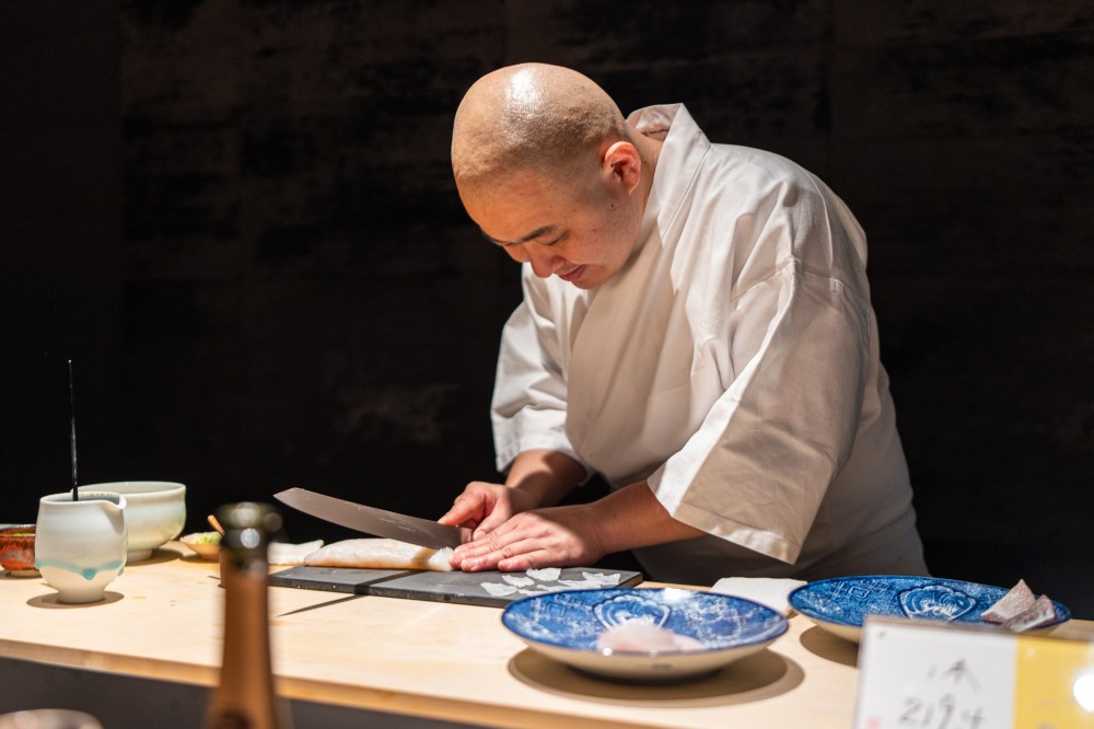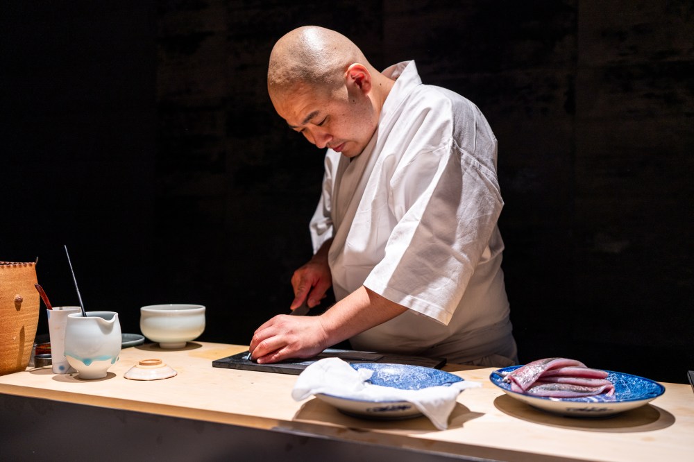 つまりから握りへとオーソドックスな構成でありながらも自分のオリジナリティーを出すための工夫をいろんな所から見受けられる。まだ難波さんの影響は濃く残っているものの自分のクリエイティビティで変化を試している姿が印象的だった。まだ弟子はいなくて一人で仕入れから仕込み、調理を全て行いながらも一切妥協しない、そのストイックな姿勢からは修道僧のような雰囲気まで滲み出している。