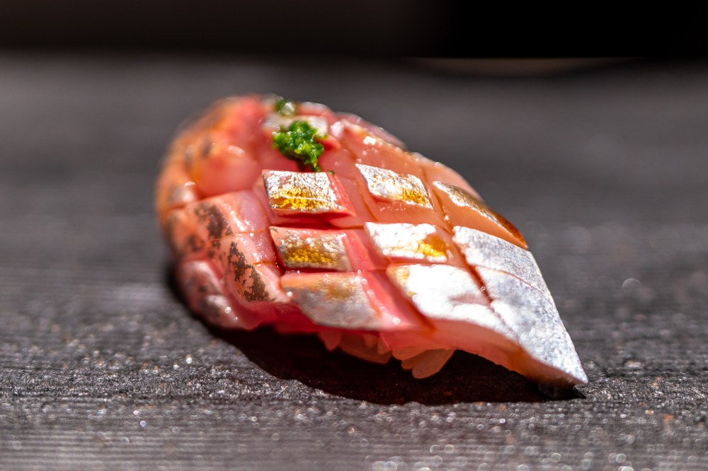 初めて梢さんの鮨を食べたのは今から2年前のちょうど同じ時期だった。当時梢さんは鮨なんばで修業をしていて、難波大将が若手育成のために設けていたランチの二番手コースで鮨を握っていた。お客さんを前に緊張しながらもしっかりと難波大将の鮨を充実に再現していて、すごく丁寧な仕事が印象的だった。その後、梢さんが独立して自分のお店を出す話は結構前から聞いていたが、コロナ渦のせいなのかなかなか新店の話は聞こえてこなかった。