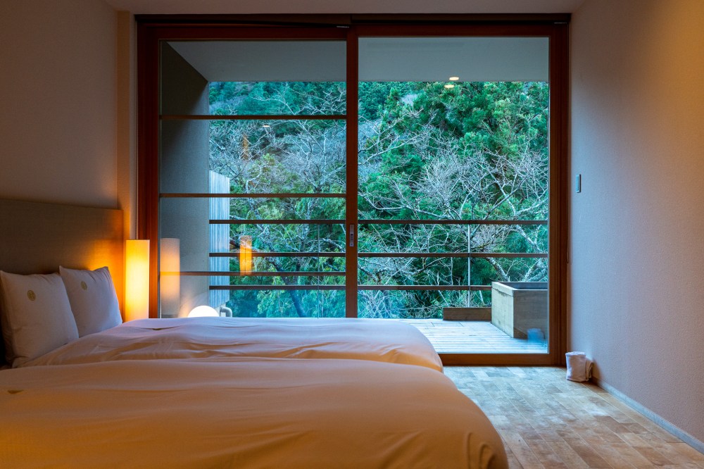旅館の敷地に入るには早川にかかってる橋を渡る必要がある。この橋がこの立地の利用を可能にしてくれているが、別世界へ渡っていくような演出にもなっているような気がする。