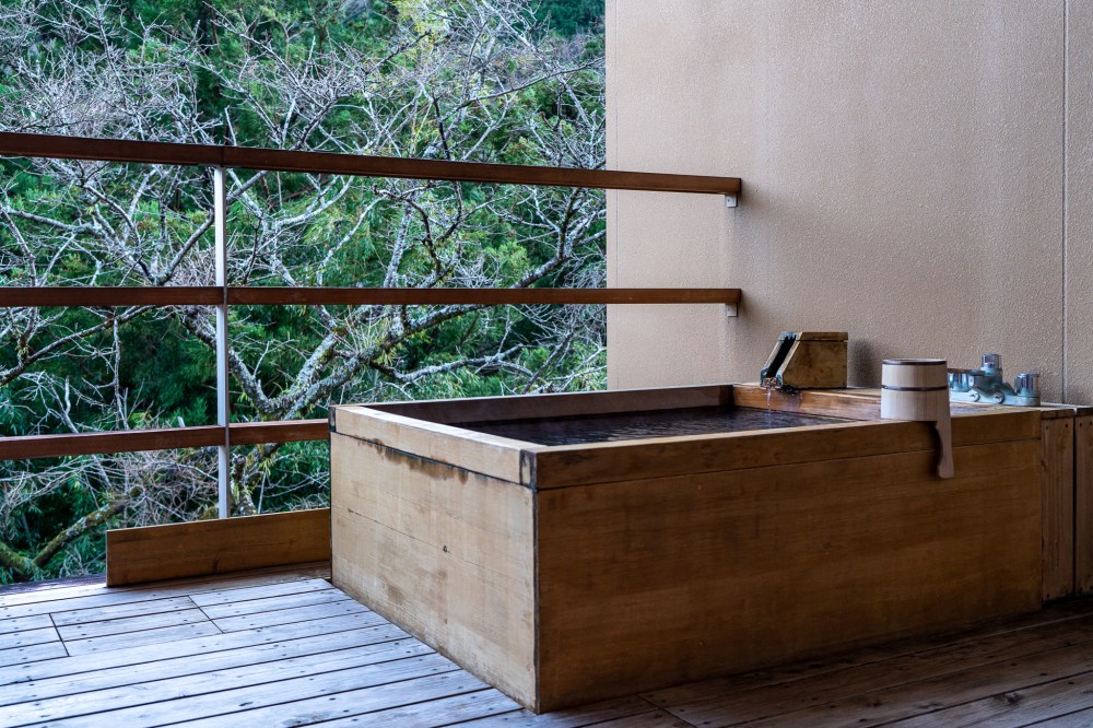 部屋の奥にはベランダでそこに露天風呂がある。