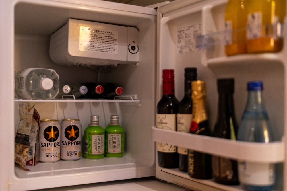冷蔵庫には飲料水とビールやワインなどお酒類が入っていてクラブフロアではこれがすべて無料。後、部屋へのお酒の持ち込みは無料だが、食事の時にダイニング(食堂)への持ち込みは3,500円と有料だった。