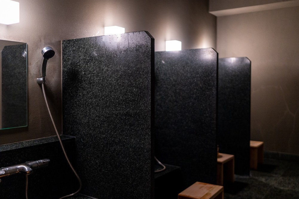 部屋の風呂を楽しんだ後は1階にある大浴場へ。すべての部屋には露天風呂が付いているので大浴場には人がいなくてほぼ貸し切り。