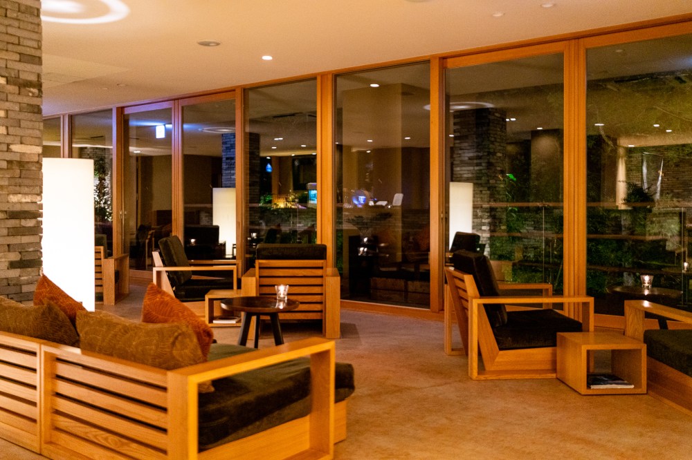 中へ入っていくとそこは3階ロビーであった。谷の地形をうまく利用して作られているのがよく分かる。チェックインはロビーでも部屋でも可能ということだったので部屋でのチェックインをお願いした。