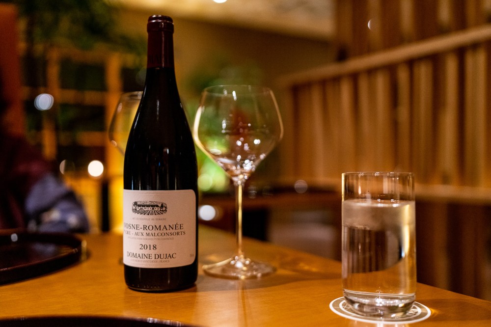この日の晩酌は家から持ち込んだ最近のお気に入りのデュジャックのヴォーヌ・ロマネ オー・マルコンソール。後は日本酒を少々。