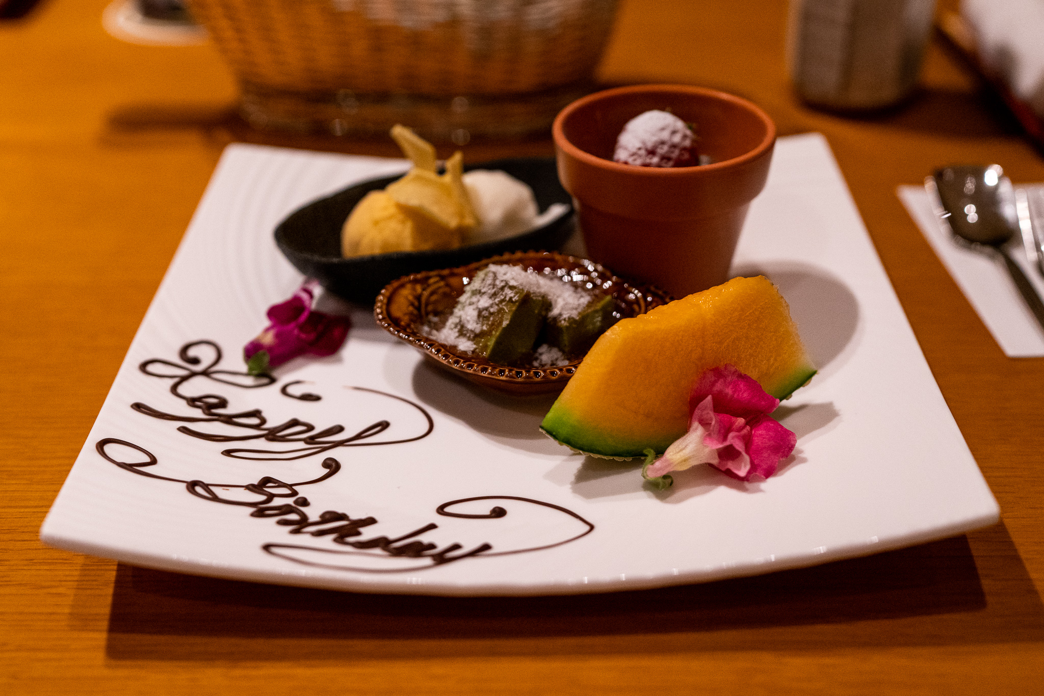 チェックインの手続きを済ませるとウェルカムドリンクとお菓子、おしぼりを持ってきてくれた。小さい皿やスプーン一つも品がいい。