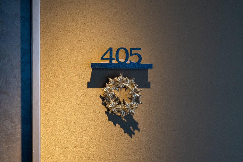 「空」は401号と405号の2つあって今回利用したのは405号室。ドアを開けて入っていくと玄関に花が飾られていて、そのセンスがいい。