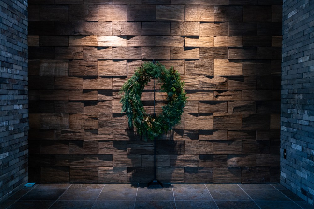 エントランスを入っていくと正面には石の壁にクリスマスのリースが飾られていて、左側にロビーにつながる巨大な自動ドアがあるが、それがドアなのかは動くまでは分からなかった。この演出もここが非日常的な空間ということを自覚させてくれる。