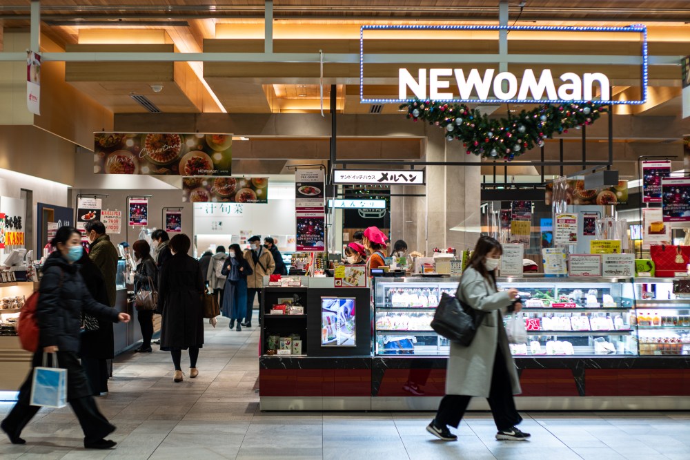 新宿駅構内のNEWoMan。0.95という驚異的な明るさのレンズだからこそできる横一枚のフォーカスと自然なアウトフォーカスが面白い。