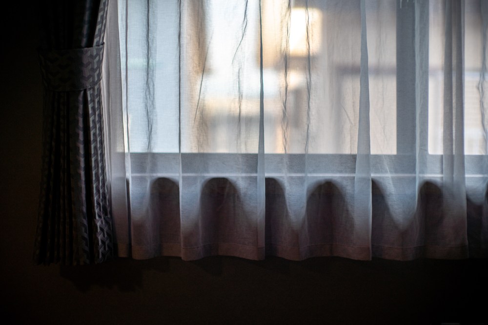 窓からの逆光でレースカーテンを撮ってみた。光の段差とレースカーテンの質感とシワ。