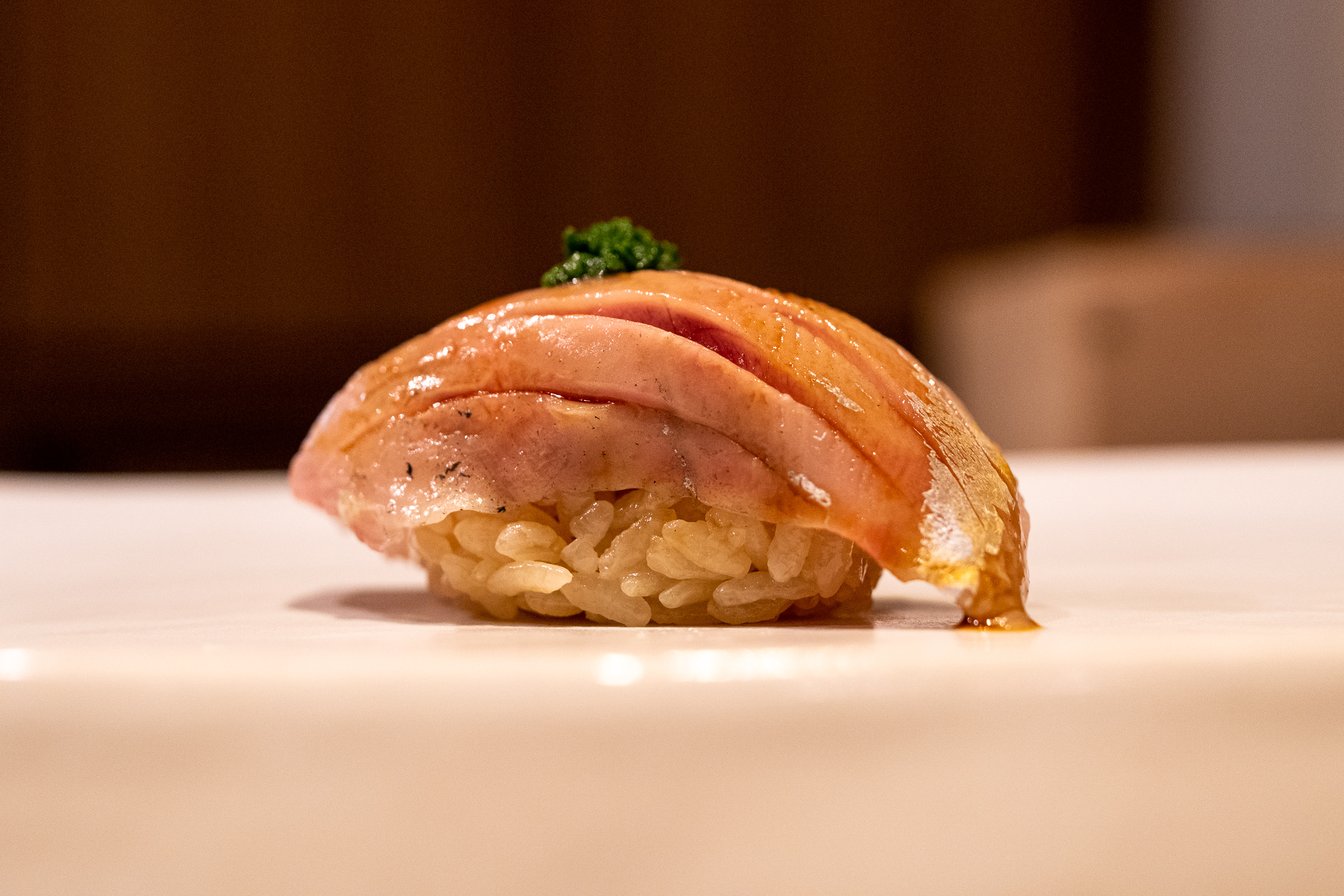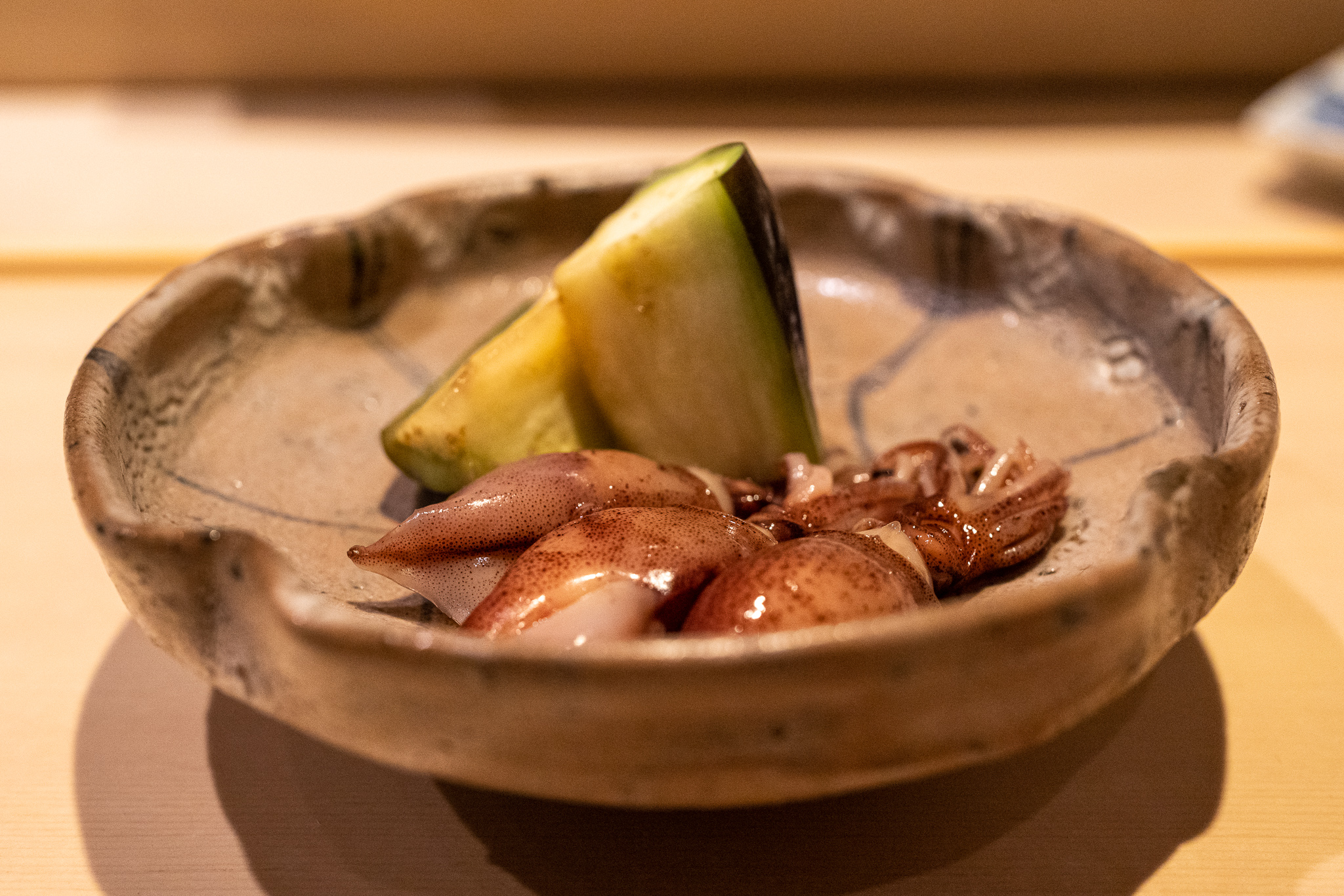 猪野大将が握る鮨はその大きい体とは裏腹にすごく繊細できめ細かい。またその真面目な人の良さが伝わってくる。多分東京ではこの値段でこのクオリティーを実現するのはかなり難しいと思う。土砂降りの中を5時間走った甲斐があった。旅先でこのような素敵な料理が食べられて幸せ。