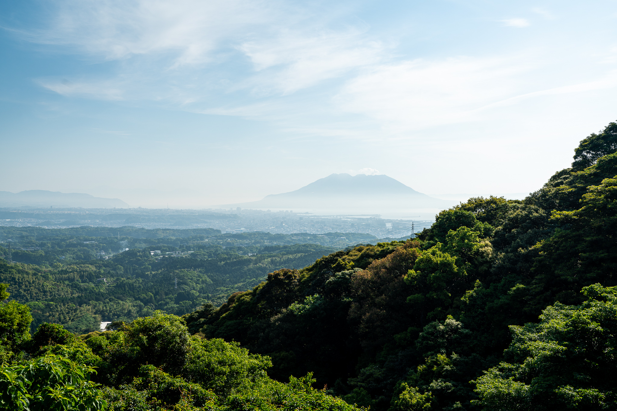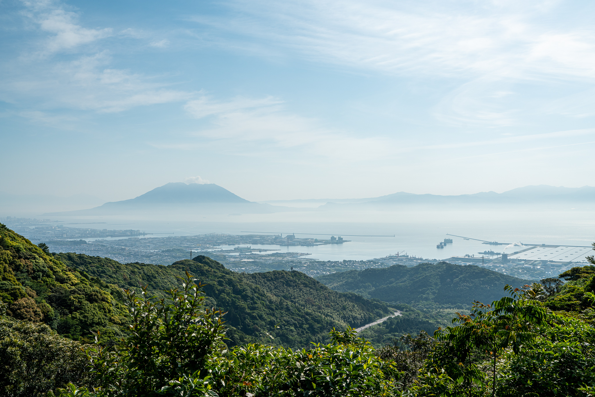 須々原展望台から見える鹿児島市と錦江湾、桜島が美しい。自分が持ってる鹿児島のイメージはこの写真に一番近いかもしれない。