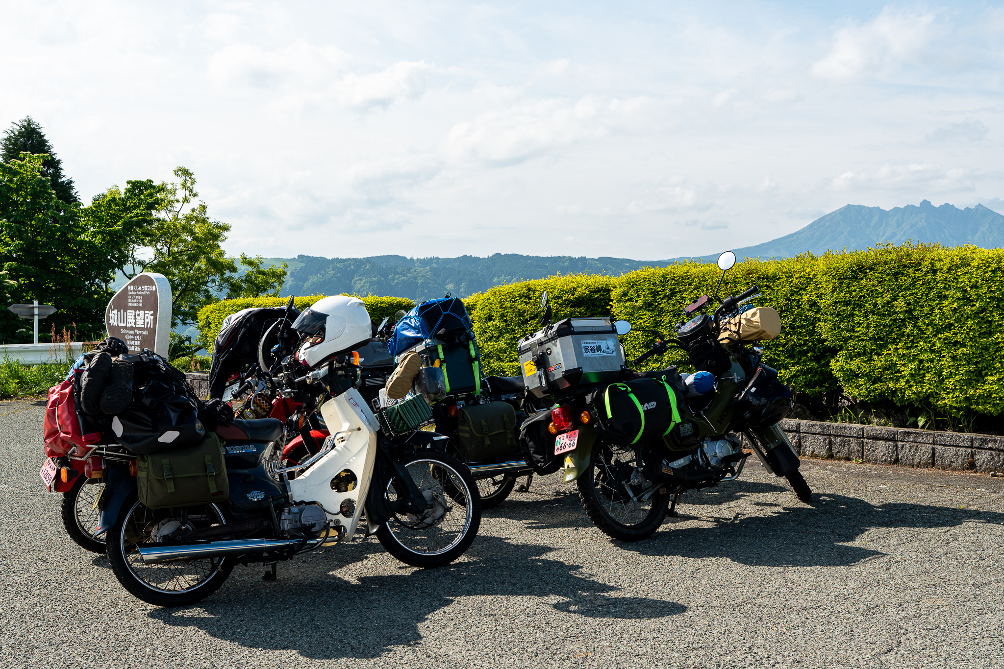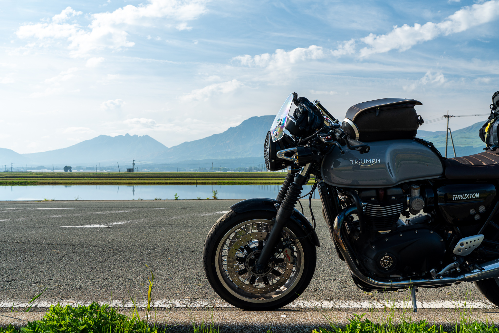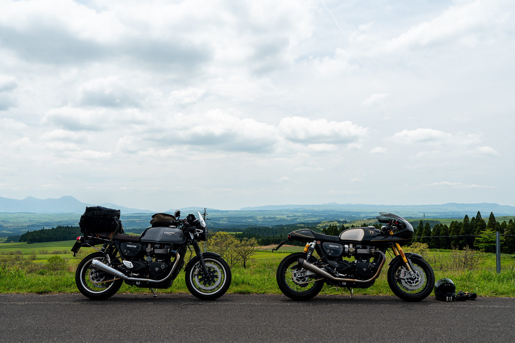 とりあえず挨拶代わりに一緒に走り出す。スラクストンと一緒に走るのは結構久しぶりでこの同じエンジン音とリズムが心地いい。また本当にいい天気で最高のコンディションの阿蘇を100%体で感じながら走るのは最高に気持ちいい。なんて素敵なんだ。