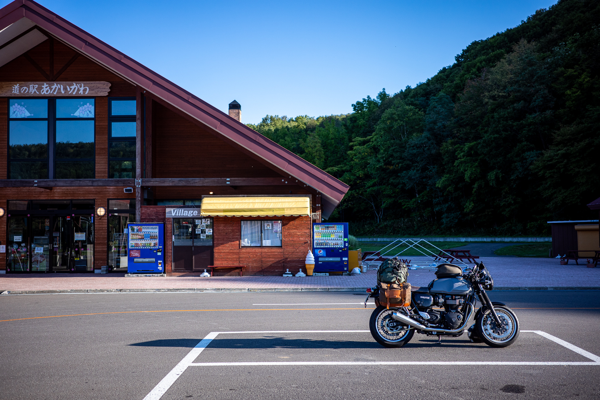 気持ちよく走って道の駅あかいがわでトイレ休憩。また7時前と早い時間だったのでお店はやってない。オロロンラインを走ったらこういう休憩ポイントで同じ船できた方々とよく一緒になるけどこの国道393号線だとあまり会わない。これはちょっと寂しいね。