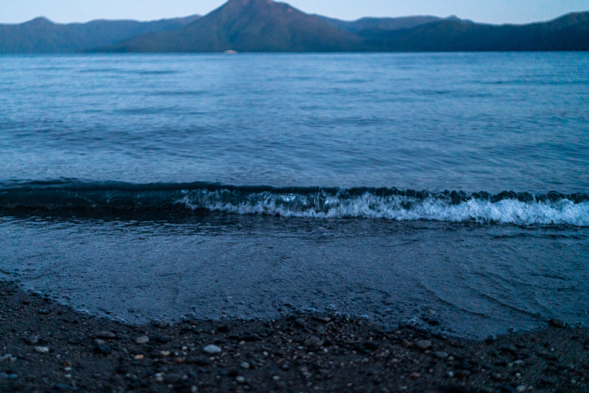 外に出てみるとやっぱり湖が荒れている。風もないのにこの波はどこから来てるんだろう?不思議…完全に目が覚めてしまった。まだ5時前だけど北海道の朝は早い。管理棟の自販機から缶コーヒーを一つ買ってきて支笏湖の波を見ながら朝を楽しむ。こういう何もしない時間も北海道旅の贅沢の一つ。