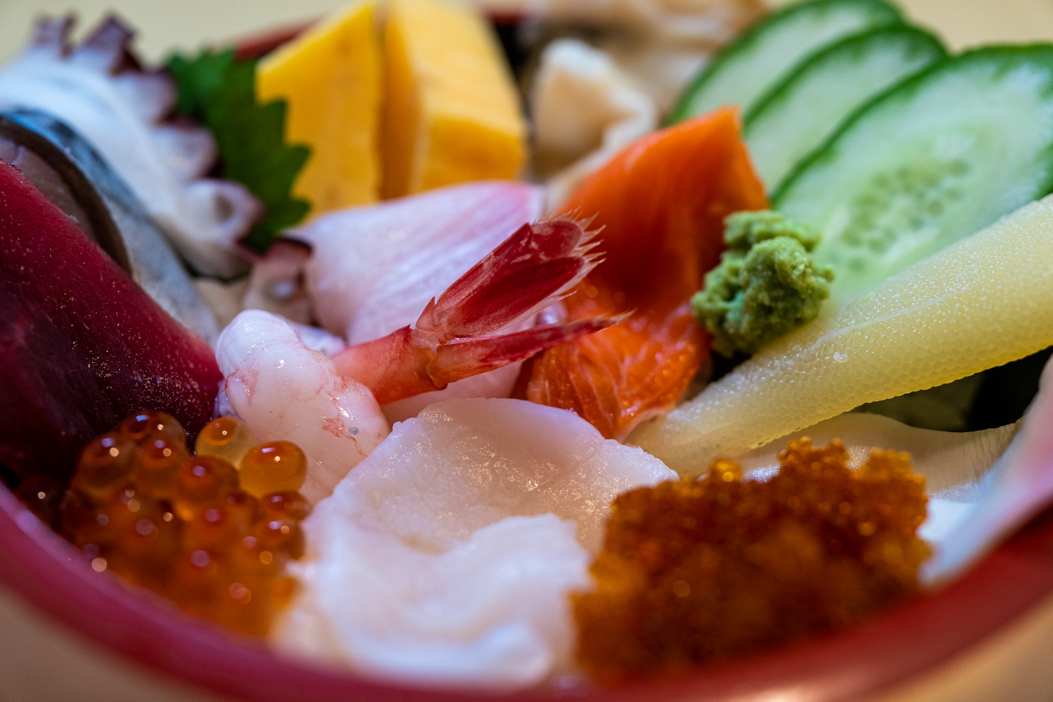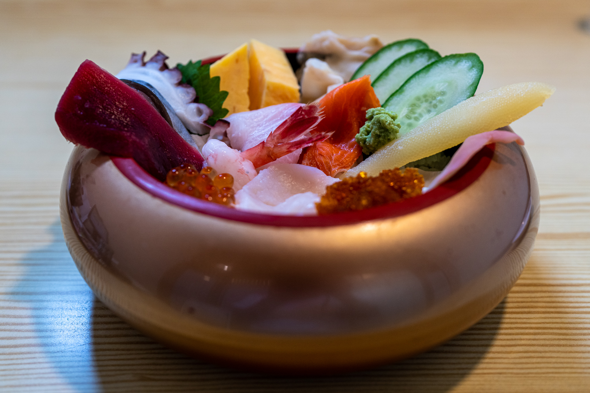 そんなこと考えながら30分くらい待ってたら呼び出されて店内へ案内された。メニューには美味しそうなものがたくさんあってその中でも礼文産バフンウニのウニ丼があって喜んだけどお値段なんと9,860円!えぇぇぇぇ…。これはさすがに高すぎるのでお店の看板メニューの蛇の目ちらしを頼んだ。