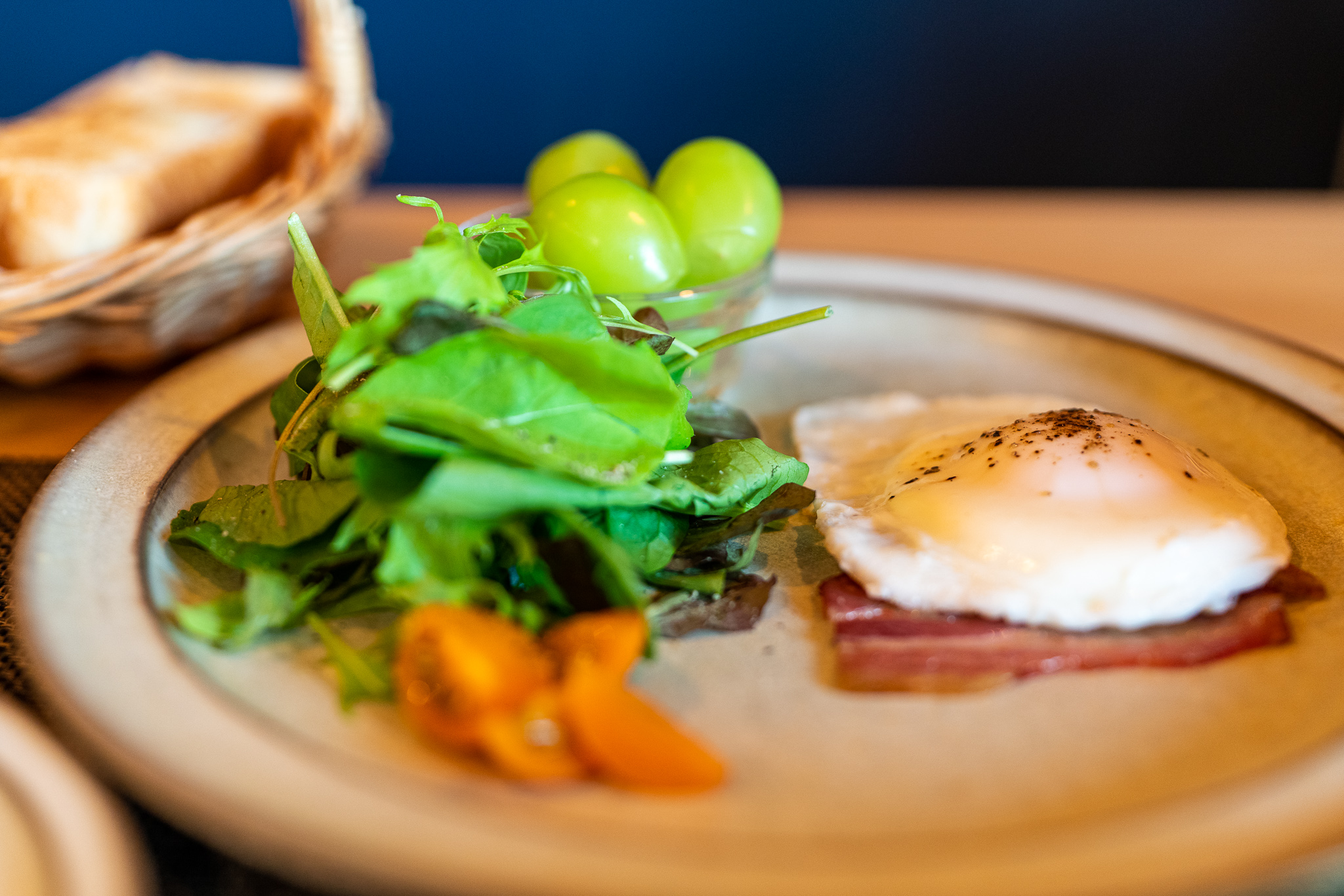 宿に戻ると星野さんが朝食を用意してくれた。なんとオシャレでヘルシーな盛り付け。もう見ただけで美味しさがよく分かる。